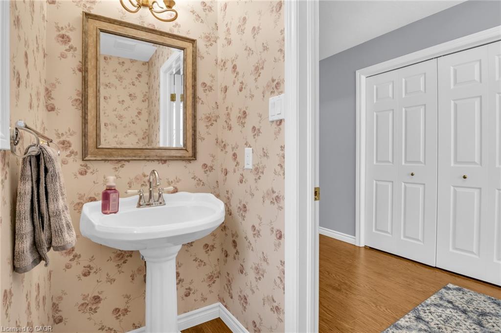 A stunning residence nestled in the highly sought-after, quiet community of South Parkwood Estates in Elmira. This 4-bedroom, 2.5-bathroom home offers the perfect blend of small-town tranquility and modern convenience, with easy access to the charming village of St. Jacobs and the bustling Kitchener-Waterloo area. As you step inside, you are greeted by a sizable foyer that sets an inviting tone. The main level features a desirable open-concept layout, anchored by a warm gas fireplace—the perfect focal point for hosting guests or enjoying quiet evenings. The spacious kitchen is a chef’s delight, boasting ample counter and cabinet space. For ultimate accessibility, the primary bedroom is located on the main floor, featuring a large walk-in closet, alongside a dedicated main floor laundry room. The fully finished basement expands your living space significantly. Here, you will find three additional sizeable bedrooms, ideal for a growing family or a home office. The cozy rec room, complete with a woodstove, provides a rustic retreat for chilly Ontario winters. A standout feature is the walk-up access from the basement directly to the oversized 2-car garage, offering incredible functionality and potential for a secondary entrance. Step outside into a backyard that is truly a rare find. Professionally landscaped gardens surround a peaceful waterfall feature, creating a serene atmosphere. Backing onto a lush woodlot with no rear neighbors, you can enjoy ultimate privacy on the large deck or under the gazebo. The exterior is completed by a resurfaced driveway with plenty of parking for family and friends. Experience the best of Elmira living in this beautifully maintained and thoughtfully designed property.