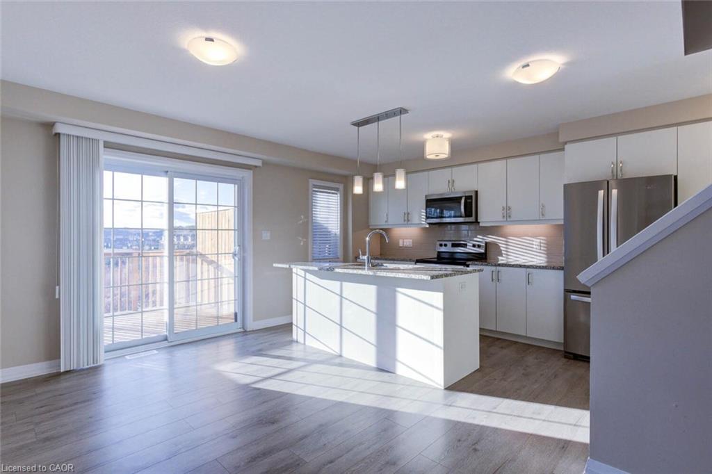 NEWER TOWNHOUSES FOR LEASE CLOSE TO HWY 401 Beautifully finished top to bottom 3-bedroom, 3-bathroom home. OPEN CONCEPT second floor with granite counter tops, stainless steel appliances and a HUGE ISLAND in the kitchen. Modern laminate flooring, ceramics and carpet through out. Master Bedroom with ensuite bathroom and a walk-in closet. Central Air and garage door opener with remotes. DOUBLE GARAGE Utilities paid by tenants including water heater & softener rentals. Good credit is required and a full application must be submitted. Photos as per vacant unit.