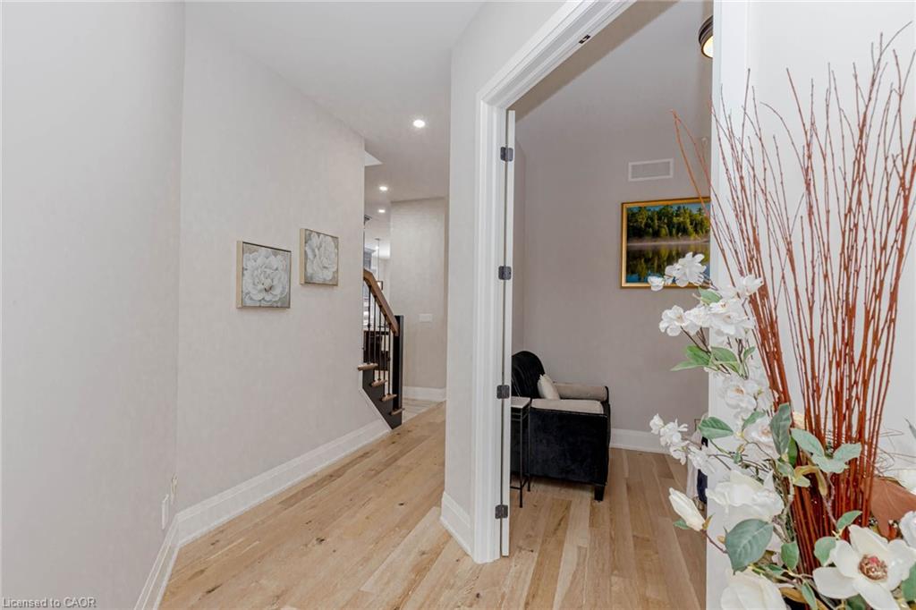 Experience refined living in this impeccably upgraded luxury residence offering approx 3,000 sft. of refined living space in the prestigious Doon South community. Designed with sophistication and functionality in mind, this sun-filled home is enhanced by expansive windows that flood the interiors with natural light, creating a bright and airy ambiance throughout. The main level makes a bold statement with soaring 10 ceilings, rich hardwood flooring, and a thoughtfully designed layout that includes a private main-floor office-perfect for today's work-from-home lifestyle. A generously sized powder room on the main floor offers the potential to be converted into a full washroom. At the heart of the home lies a stunning chef-inspired kitchen featuring quartz countertops, a statement island, custom cabinetry, premium JennAir built-in appliances, and a spacious pantry. The sunlit breakfast area seamlessly connects indoor and outdoor living, overlooking a well-sized backyard ideal for relaxation. Upstairs, a spacious family retreat with oversized windows provides the perfect setting for gatherings. The primary suite offers a luxurious escape, complete with a 5-piece ensuite and a walk-in closet. All four generously sized bedrooms feature their own attached washrooms, delivering unmatched comfort, privacy, and a true sense of upscale living for the entire family. Adding to the home's appeal is a walk-out unfinished basement-an exceptional opportunity to design and customize your own space, truly a blank canvas to bring your vision to life. The exterior is equally impressive with a beautifully finished paver stone driveway and a well-proportioned backyard, perfect for outdoor enjoyment. Ideally located just minutes from Hwy 401, shopping, dining, top-rated schools, and parks, this remarkable home offers the perfect blend of luxury, lifestyle, and convenience. A rare and distinguished offering that defines modern elegance-this is not just a home, it's a lifestyle statement.