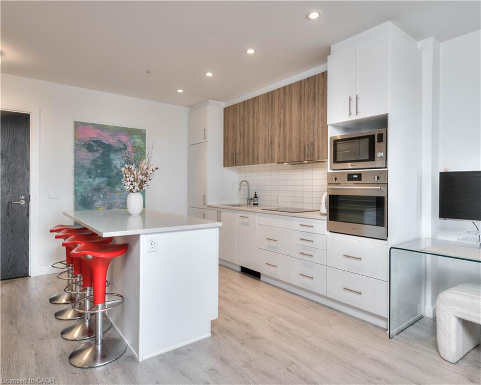 #6 SPECTACULAR LOCATION - Set in the heart of the vibrant Bauer District, you're steps from everything Uptown Waterloo has to offer — fine dining, boutique shopping, groceries, nightlife, Waterloo Park, both universities, and the LRT right at your doorstep. #5 LUXURY AMENITIES - Circa delivers top-tier amenities: a rooftop saltwater pool, private cabanas, a BBQ lounge, wet bar & indoor/outdoor social lounge. There's also a fully equipped fitness centre, outdoor yoga area, co-working spaces, and Lala Social House bar & restaurant on the ground floor. #4 ELEVATED LIVING - Floor-to-ceiling windows flood the unit with natural light. Wide-plank laminate floors, Lutron dimmable lighting, and 9-foot ceilings. The sleek European-style kitchen features quartz countertops and subway tile backsplash, a concealed fridge and dishwasher, a stainless steel oven and cooktop, and a spacious island with built-in storage and breakfast seating. #3: BALCONY WITH STUNNING VIEWS OF UPTOWN - On nearly 200 sq ft of private balcony space with sweeping views of the city. #2: BEDROOM & BATHROOM - One spacious bedroom offers comfort and privacy, with a modern 4-piece ensuite with shower/tub combo. #1: PARKING —The suite includes a secure, covered parking spot—a true luxury in Uptown. The City of Waterloo offers additional rental spots.