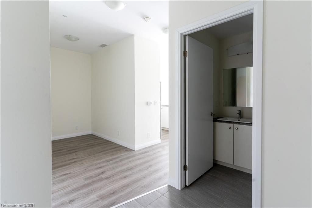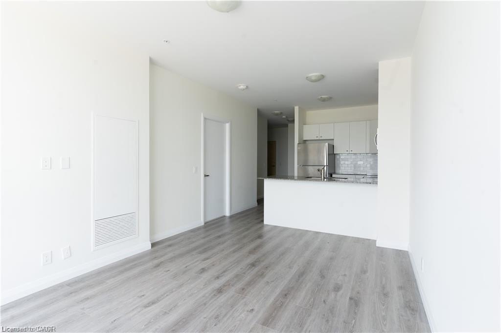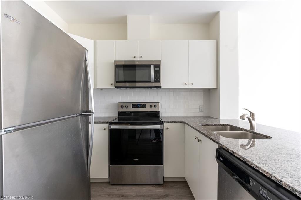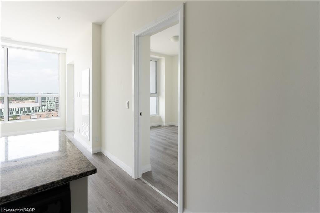 Modern 1-bedroom + Den condo located on the 13th floor in the heart of Downtown Kitchener. Bright and spacious unit offering approximately 800-899 sq. ft. with a functional layout, west exposure, open balcony, and clear city views. Features include a contemporary kitchen, comfortable living area with fireplace, in-suite laundry, and one owned underground parking space. Excellent building amenities include gym, bike storage, games room, and business centre with Wi-Fi. Prime location steps to Victoria & King, LRT, hospital, library, shops, restaurants, and Google headquarters. Vacant and available for immediate possession.
