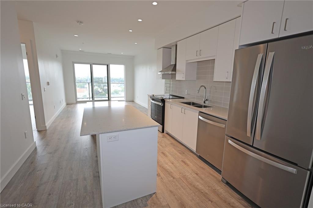 Fall in love with life in the Gaslight District! This 2-bedroom, 2-bath condo is move-in ready and priced to sell. You’ll love the peaceful views of the Grand River and Downtown Galt, plus the airy feel from the 9-foot ceilings. The open-concept kitchen comes with five sleek Whirlpool appliances and a handy island that’s perfect for casual meals or entertaining. Step out onto the glass balcony — accessible from both the living room and the primary bedroom — and soak in those amazing views. You’ll also have underground parking and your own storage locker. The Gaslight Condos offer incredible amenities too: a fitness centre, games room, library/study, and a gorgeous outdoor terrace with pergolas, fire pits, and BBQs overlooking Gaslight Square.