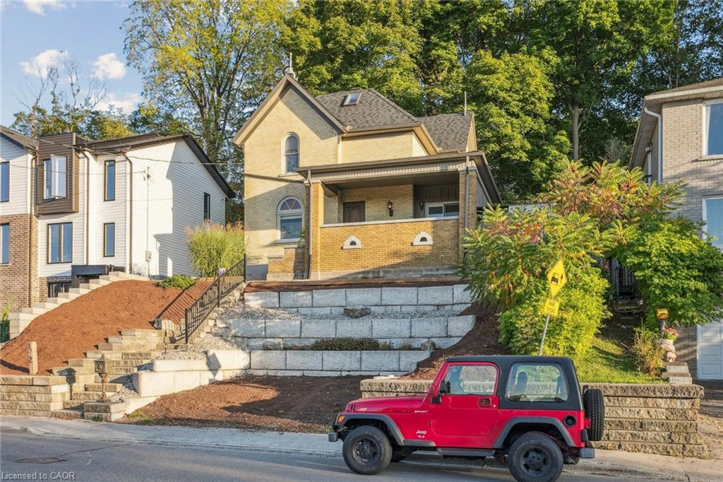 This beautifully maintained 2080 sq. ft. double-brick home, built circa 1900's, blends historic character with modern updates. Features include hardwood floors, crown mouldings, high ceilings, stained-glass windows, and the original staircase railings. The spacious kitchen offers new appliances and a walkout to the wrap-around deck. With 3 bedrooms and 1.5 bathrooms, a versatile loft with skylights, a gas fireplace, and approximately 500 sq. ft. of basement storage, this home is both functional and charming. 200 amp electrical service, plumbing, and roof shingles (approx. 6 years old) have all been updated. Enjoy a private backyard backing onto a wooded area and sunset views from the elevated front patio. Walking distance to downtown Hespeler, schools, parks, and trails, and only five minutes to Hwy 401.