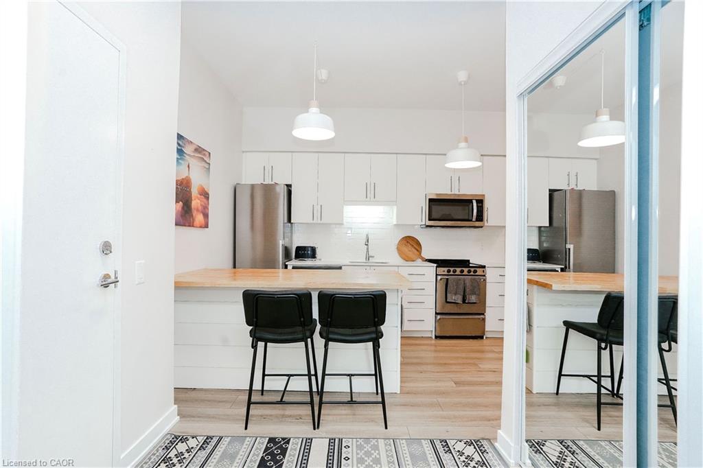 The place to be in Kitchener, Hush Condos! Fully furnished 1 bedroom condo with 580 sq ft of stunning living space plus a walk out terrace - perfect entertain and BBQs. Bright, Open concept layout. Central location near schools, shopping (Fairview Mall, Zehrs Plaza, and more), Kitchener’s downtown core, public transit, and restaurants.Outdoor enthusiasts will love the walking trails and dog park nearby, Chicopee Ski Hill. Fabulous amenities in the building include outdoor BBQ area, party room, visitor parking and secured entrance. Low condo fees include heat, parking and maintenance. Perfect for first-time buyers, investors, or university/college students. Pet friendly building.
