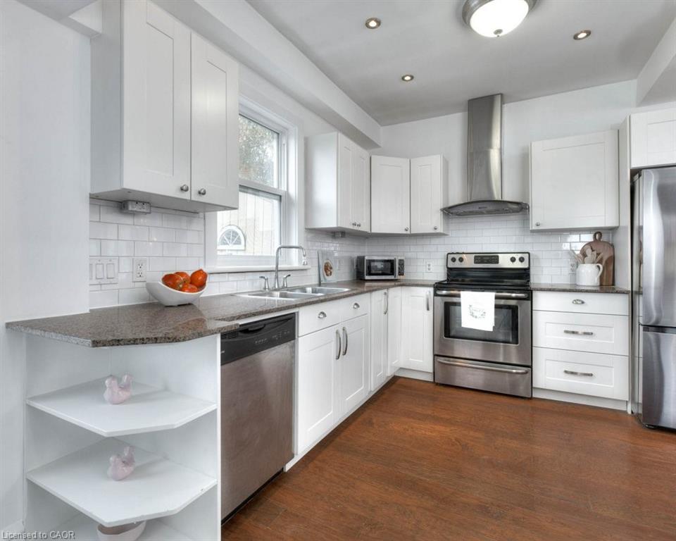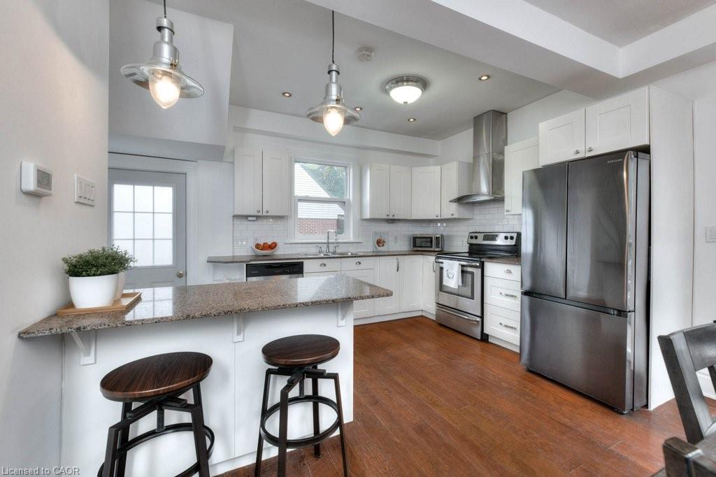 Step into a home that feels both timeless and fresh. This bright, move-in ready 3-bedroom, 2-bathroom gem has been thoughtfully updated with modern finishes while preserving its original charm. Enjoy ample storage, hardwood and laminate floors throughout, high ceilings, and elegant trim and baseboards that add depth and personality to every room. The open-concept kitchen and dining area invites connection, featuring stainless steel appliances, granite counters, a breakfast bar, and a walk-out to a side entrance. Keep your car out of the cold and into the heated detached garage that was built with city permits in 2017. A rare find in this family-friendly neighbourhood. This home offers quick access to major roads and a short walk to downtown Guelph, schools and other fantastic amenities. Families and outdoor enthusiasts will love the close proximity to parks and the Royal Recreation Trail. Whether you're starting out, downsizing, or a creative looking for a space that supports your passions, 136 Alma Street North offers the perfect blend of character, convenience, and possibility.