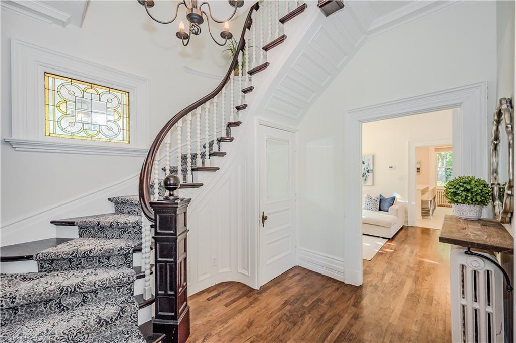Step into the timeless elegance of 138 Dublin Street N, a captivating century home nestled in the heart of Downtown Guelph. From the moment you arrive, the charming wraparound porch beckons you into a residence where historic beauty meets modern sophistication. Every detail has been thoughtfully curated, from the exquisite stained-glass windows to the grand curved staircase in the foyer. Hardwood floors, crown moulding, and soaring ceilings create a sense of refinement, while the intricate artistry throughout sets this home apart. The inviting living and dining rooms boast quintessential century home features, including pocket doors and a new electric fireplace, perfect for cozy evenings. The main level also offers a versatile family room with walkout access to the porch. The heart of the home is the fully remodeled kitchen, showcasing custom Barzotti cabinetry, a spacious island, and top-of-the-line Viking and Miele appliances. A secondary staircase, convenient laundry/mudroom, two pantries, and a 2-piece powder room complete this level, leading seamlessly to your private backyard retreat. Upstairs, the primary suite is a sanctuary, featuring a custom walk-in closet and a luxurious ensuite. Two additional bedrooms and a sunroom with balcony access add to the charm. The third level offers a fourth bedroom and a versatile recreation space, ideal for hobbies, yoga, or quiet reflection. Outside, the low-maintenance backyard is an entertainers dream, with a spacious deck, new gazebo, hot tub, and detached garage equipped with a 50-amp EV charging station. The lower level provides ample storage and potential for additional living space. Enjoy the best of both worldsproximity to Guelphs vibrant downtown with its boutique shops, cafés, and restaurants, and the serenity of your own private oasis. This cherished gem is truly one of a kind. Schedule your private showing today and experience the magic for yourself!
