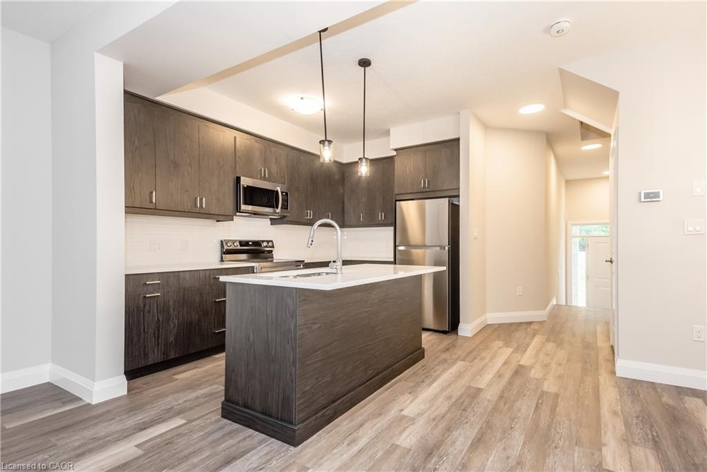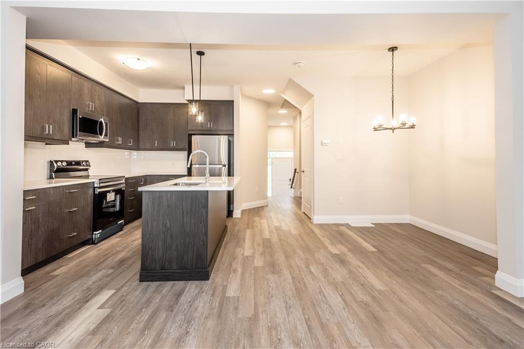 WELCOME HOME to this fantastic unit located in East Galt in the Alison neighbourhood of Cambridge. This unit boasts 3 bedrooms and 3 bathrooms with tons of natural light throughout. Every detail has been thought of from the hardwood flooring, modern light fixtures, open concept living space, to the aesthetically pleasing bathrooms. Walking into the unit there is a full view from the front door to the sliding doors leading out to the backyard with deck. The modern kitchen offers a large island, tons of cupboards and counter space making this a perfect place to host family meals. Basque in the extra-large living space with separate dining area. On the second floor there are three spacious bedrooms with an en-suite bathroom in the large primary bedroom with a great size walk-in closet and a Juliette balcony. The upstairs laundry finishes the space off beautifully, with making it convenient and very accessible. This is the perfect place to call home with over 1500 sqft of upscale living. Book your appointment today!