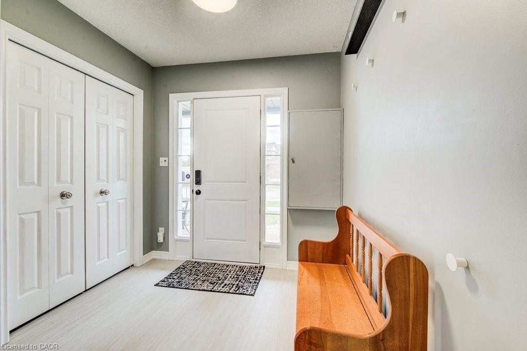 Beautiful Freehold Townhome Backing onto Trails with No Rear Neighbours and Outdoor Retreat! Welcome to this beautifully maintained, move in ready freehold townhouse offering modern style, functional living, and peace of mind with key recent upgrades. A spacious foyer sets the tone and leads to a finished lower level featuring a bright rec room or versatile flex space, complete with a 3-piece bath and cold room, ideal for guests, a home office, or additional living. The main level is warm and inviting, enhanced by pot lights and a stylish eat in kitchen with ample prep space. The adjacent dining area offers plenty of room for everyday living and effortless entertaining, while sliding doors open to a wide deck overlooking the backyard, creating a seamless indoor-outdoor flow. Main floor laundry and a powder room add everyday convenience. Upstairs, you will find three bright bedrooms, including a spacious primary retreat with double closets, along with a well appointed 4-piece bathroom. Step outside and unwind in your private outdoor setting, complete with a generous deck and covered pergola. Backing onto trails with no rear neighbours, this space offers a rare combination of privacy and open views, with plenty of room for gardening, entertaining, or enjoying summer days. Enjoy added confidence with major updates including roof 2022, furnace and central air conditioning 2021, and an owned tankless water heater 2024, plus a water softener. Located in a desirable family friendly neighbourhood within walking distance to schools, a short drive to Conestoga College, and offering easy access to transit and Highway 401. An exceptional blend of comfort, convenience, and lifestyle. Book your showing today before it is gone.