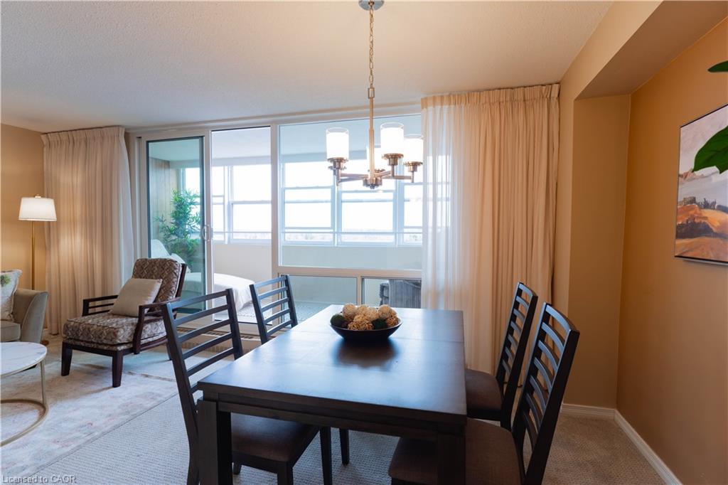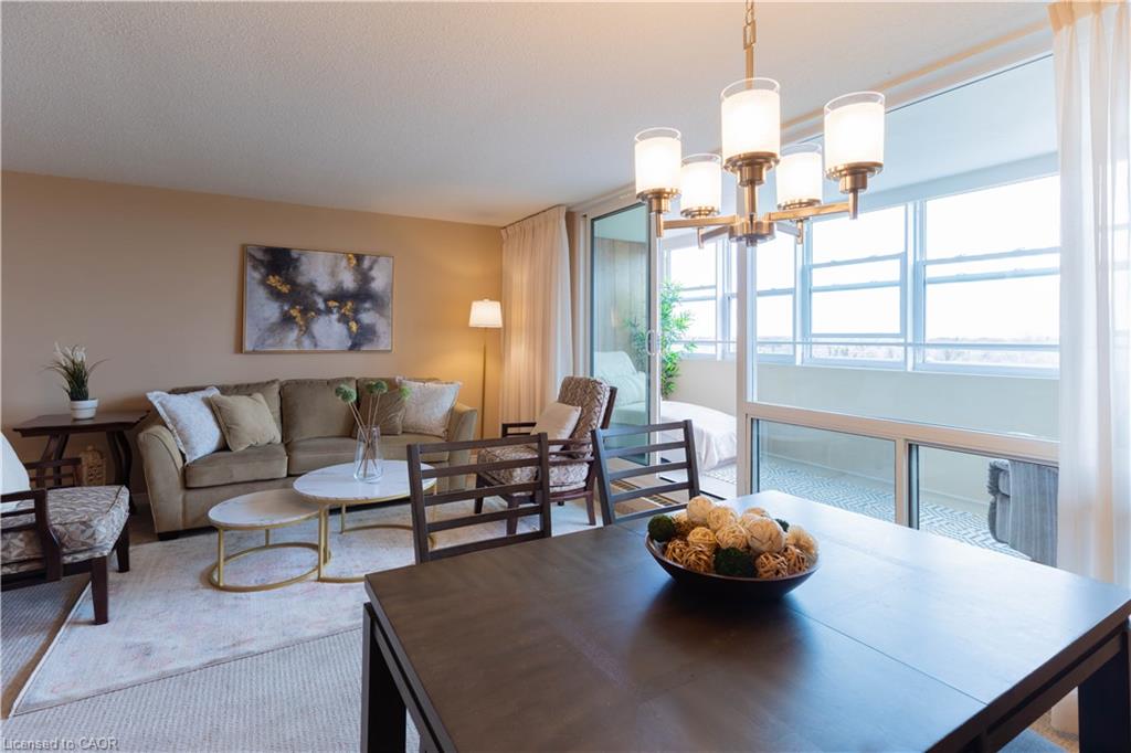Welcome to Suite 1408 at the highly sought-after Bluevale Tower. This spacious 14th-floor, 2-bedroom, 2-bathroom unit offers an elevated lifestyle with panoramic views of Waterloo. The bright, open-concept living and dining area is perfect for entertaining and leads to an enclosed private balcony, ideal for enjoying your morning coffee with a view. The primary suite features a walk-in closet and a private ensuite 2-piece bath, while the second bedroom offers excellent versatility as a home office or guest room. One of the standout features of 225 Harvard Place is truly worry-free living; condo fees are all-inclusive, covering heat, hydro, and water for easy monthly budgeting. This well-managed building offers a strong sense of community and an impressive list of amenities, including a tennis court, two separate gyms, each with its own sauna, a woodworking shop, a library, and a party room. Perfectly situated within walking distance to Lincoln Heights Shopping Centre and Zehrs, and just seconds from Highway 85, you are also minutes from the University of Waterloo and Wilfrid Laurier University. This move-in-ready unit includes one underground parking space and ample visitor parking. Experience comfort and convenience in one of Waterloo’s most reliable high-rises. Whether you are a professional, downsizer, or investor, book your private showing today. Updates: Carpet (May 2022), Electrical panel (Sep 2024), Windows (approx 2022)