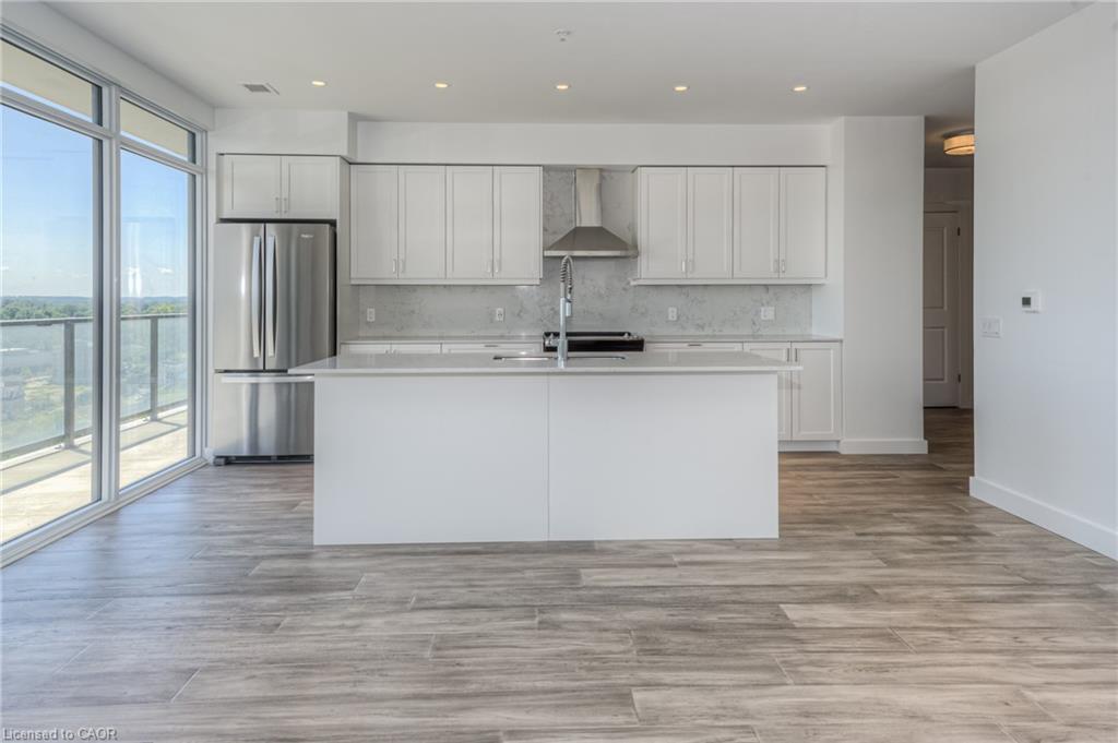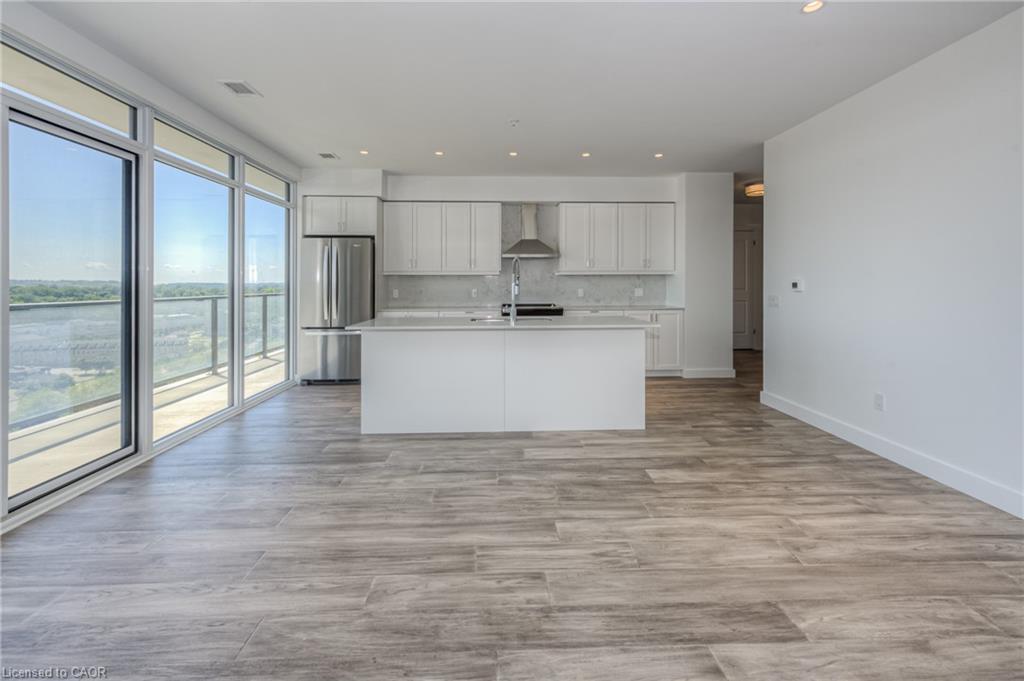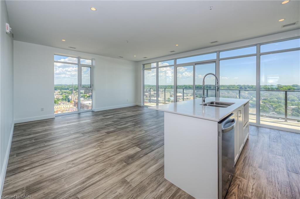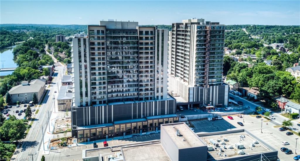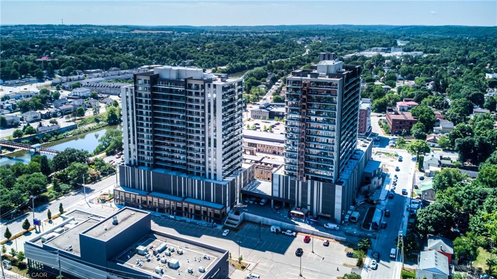 GASLIGHT DISTRICT! Cambridge's "must live" residence. This 2-bdrm/2 bathroom condo is available for occupancy immediately. Located in historic downtown Galt, Gaslight is home to residential, commercial, retail, art, dining, community, and culture. You will be able to live and work right where you live. Situated on the East side of the building, this unit has a SPECTACULAR VIEW of the Grand River, East Galt, the Grand River Valley, and a Southerly exposure through the wall-to-wall windows and from the extra-long balcony. This stunning open-concept unit features a modern kitchen with quartz counters and S/S fridge, stove, dishwasher and exhaust, in-suite laundry (washer & dryer included), and a full privilege ensuite bath, the spacious bedroom features a large walk-in closet, two walk-outs to the balcony, one parking spot provided in the underground garage complete with electric car charger. Building amenities will include a lobby with ample seating space, a secure video-monitored entrance, a fitness room with a yoga/pilates studio, a games room, a party room with a kitchen and a large private dining area, and a library. There is an indoor lounge area and an outdoor terrace with a lounge area, overlooking Gaslight Square, and featuring BBQs and private workplace pods. EV car charger included!