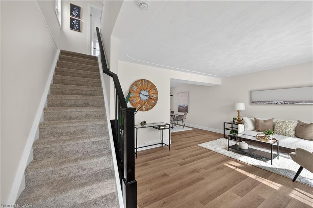 The bright, open-concept layout showcases a stunning modern kitchen complete with quartz countertops and quality finishes — complete with four brand new appliances, stove, dishwasher refrigerator and microwave perfect for entertaining or everyday living. The carpet-free main floor adds a sleek, contemporary touch, while the convenient side entrance offers excellent in-law or multi-generational living potential.