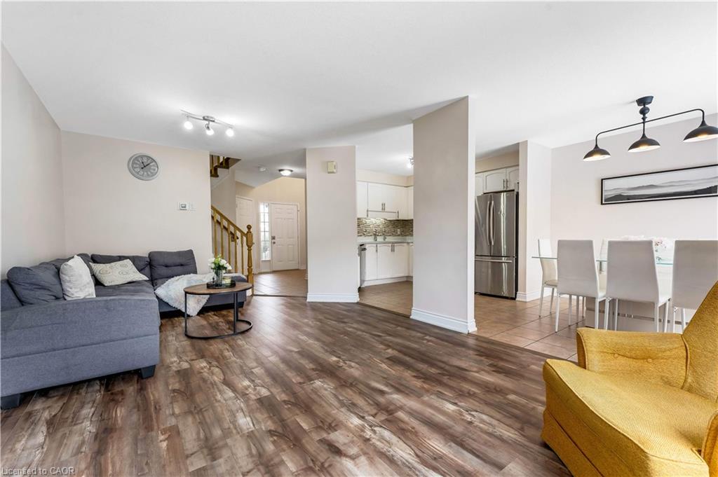 Welcome to 142 Dubrick Street, Kitchener, a beautifully updated end-unit freehold townhome in one of the city’s most desirable communities. Situated on a 30 x 114 ft lot, this move-in ready home offers 3 parking spaces: 1-car garage plus 2-car driveway, making it an ideal choice for families, first-time buyers or professionals seeking a well-maintained property in a prime location. Step inside and be greeted by a bright and inviting interior freshly painted in 2025, complemented by brand-new flooring (2025) and stylish pot lights that create a warm and modern atmosphere in the home. The spacious open-concept main floor is designed for both everyday living and entertaining, featuring a well-appointed kitchen with new Quartz countertops, quality appliances and a tasteful backsplash. The adjoining dinette area is perfect to enjoy meals. Upstairs, the home continues to impress with 3 generously sized bedrooms and 2.5 bathrooms. The primary bedroom provides a comfortable retreat, while 2 additional bedrooms offer flexibility for family members or guests. A convenient loft office space adds extra functionality, ideal for remote work or study. The bathrooms have been tastefully refreshed with modern vanities installed in 2024. The fully finished basement expands the living space significantly, featuring a huge recreation room perfect for a home theatre, games area or family lounge along with a full bathroom. Outside The fully fenced and beautifully landscaped backyard offers privacy and space to unwind, making it a perfect setting for children, pets and outdoor gatherings. Additional upgrades include New roof with shingles (2025). Located in the highly sought-after Laurentian West community, this home is just few steps from Williamsburg Town Centre, close proximity to excellent schools, parks and walking trails and easy access to Highway 8 and Highway 401. This fully upgraded, move-in ready home has it all. Schedule your showing today and make it yours!
