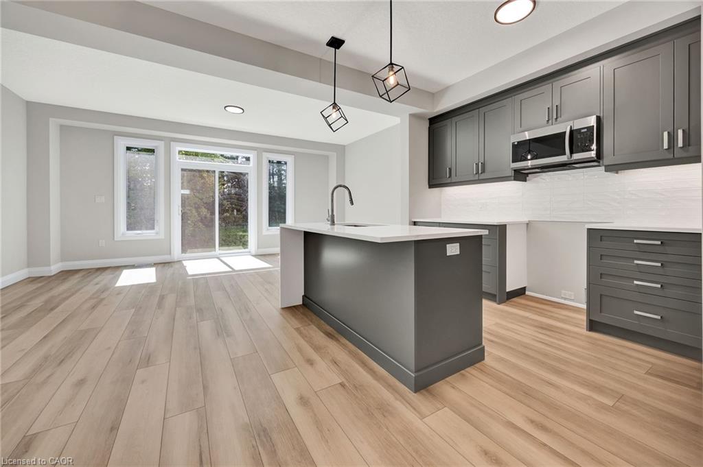 Now available for immediate occupancy, 143 Elgin Street North is a brand new luxury END UNIT Vineyard Townhome that blends comfort, style, and convenience. Backing onto mature treed greenspace, this home offers rare backyard privacy and peaceful green views. The exterior showcases classic design with stone and brick accents, black-framed windows, and clean architectural lines that give it a polished, timeless look. Inside, the open-concept main floor features 9-foot ceilings, wide-plank flooring, and a kitchen that’s as functional as it is stylish—complete with a waterfall island, quartz countertops, under-cabinet lighting, and a modern tile backsplash. Throughout the home, you'll find thoughtful upgrades that elevate the space, from upgraded lighting to quality finishes and well-planned storage. The living and dining areas connect effortlessly with the kitchen, creating a bright and practical layout for both everyday living and entertaining. Upstairs, the primary suite includes a private ensuite with a glass rainhead shower, and and additional 2 bedrooms and family bath. Right at your doorstep, you'll find Soper Park, offering green space for relaxation, playgrounds for families, and direct access to outdoor enjoyment. For your shopping needs, a variety of grocery stores are within easy reach. Dining out is a breeze with local favourites nearby. Families will appreciate the proximity to several schools, and public transit is just steps away at stops like Alison & Elgin. Plus, Highway 401 is under 10 minutes by car, making commuting simple. This is your chance to enjoy modern design, rare greenspace views, and everyday convenience—all in a brand new home. REALTOR®: