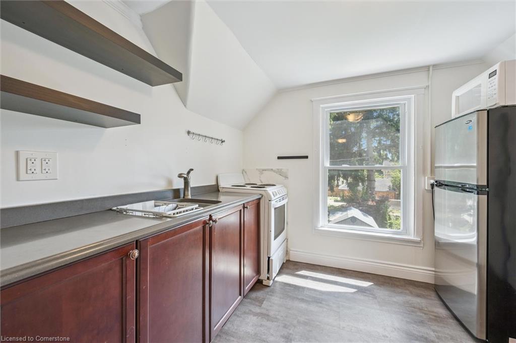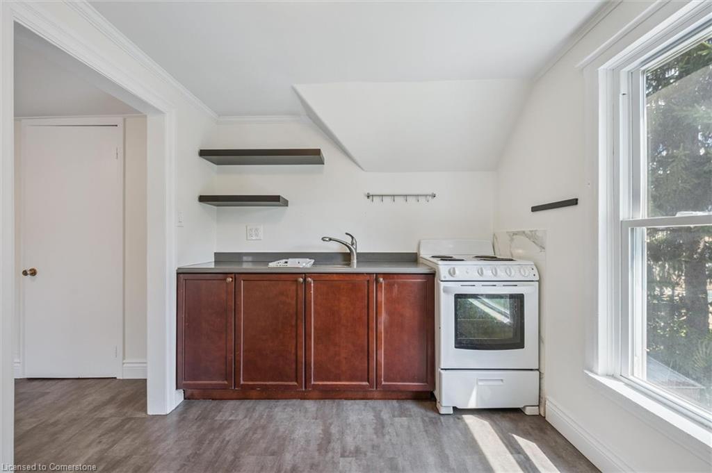 This charming 1 bedroom apartment is located on the second floor of a cozy duplex in the heart of downtown Kitchener. The unit boasts a spacious layout with ample natural light streaming in through large windows. The living area is perfect for relaxing or entertaining guests, while the bedroom provides a peaceful retreat. Enjoy the convenience of being just steps away from shops, restaurants, and public transportation. Embrace urban living at its best in this welcoming apartment in downtown Kitchener.