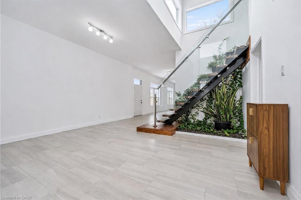 Welcome to 149 Woolwich Street, a truly one-of-a-kind custom home offering over 3,600 sqft of thoughtfully designed living space, with 5 bedrooms and 5 bathrooms, all on one level. From the moment you step inside, the bright, welcoming foyer sets the tone, complete with a cozy sitting area, a powder room, and a private guest suite with its own ensuite bath and outdoor patio with a pergola. A floating staircase creates an impressive architectural focal point, with modern glass railings, natural wood treads, and a stunning live wall. Upstairs, the loft offers an inspiring space for an office, studio, or creative retreat, with panoramic views and abundant natural light. At the heart of the home, the open-concept kitchen, dining, and living areas feel spacious and airy, highlighted by 10 ft. ceilings, expansive windows, and a charming wood-burning stove. The kitchen features a large island, granite countertops, stainless steel appliances, and a gas range with a chimney hood. Around the corner, you’ll find a convenient laundry area and patio doors leading to a side terrace with a natural gas hookup for easy outdoor grilling. Designed for both comfort and efficiency, the home features multi-zone in-floor heating throughout. A separate family room at the centre of the home provides a private, versatile gathering space tucked away from the main living area. The primary suite is a luxurious retreat, complete with its own wood-burning stove, built-in closets, walkout to the deck, and a spa-inspired ensuite with a double vanity and a full-width shower. Each additional bedroom has been carefully designed for flexible furniture placement and extra windows to maximize natural light and cross-ventilation. Outside, the private, fenced backyard is surrounded by beautiful mature trees and features a large deck with a pergola, ideal for relaxing or entertaining. The property also includes a single-car drive-through garage and two separate driveways, with parking for up to 6 vehicles.