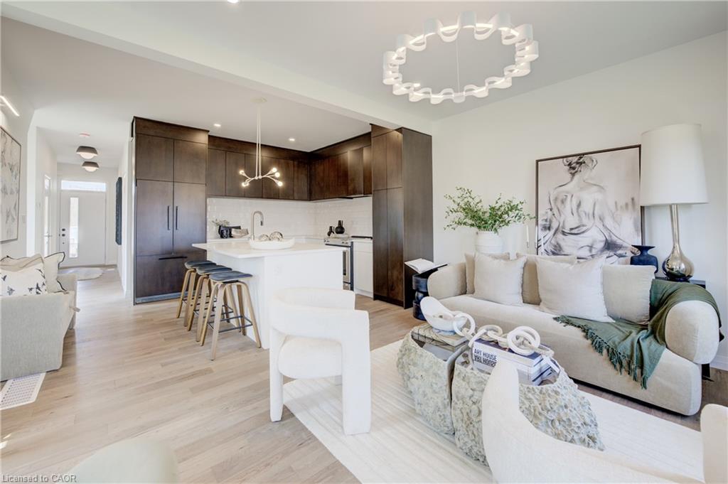 OPEN HOUSE: Saturday & Sunday 1:00pm-4:00pm at the model home/sales office located at 210 Green Gate Blvd., Cambridge. LIMITED TIME PROMOS builder's standard appliances included, $0 for walk-out lots, & $5,000 in upgrades. MOFFAT CREEK - Discover your dream home in the highly desirable Moffat Creek community. These stunning freehold townhomes offer 4 and 3-bedroom models, 2.5 bathrooms, and an ideal blend of contemporary design and everyday practicality—all with no condo fees or POTL fees. Step inside the Amber end model offering an open-concept, carpet-free main floor with soaring 9-foot ceilings, creating an inviting, light-filled space. The chef-inspired kitchen features quartz countertops, a spacious island with an extended bar, and ample storage for all your culinary needs. Upstairs, the primary suite is a private oasis, complete with a walk-in closet and a luxurious ensuite. Thoughtfully designed, the second floor also includes the convenience of upstairs laundry to simplify your daily routine. Enjoy the perfect balance of peaceful living and urban convenience. Tucked in a community next to an undeveloped forest, offering access to scenic walking trails and tranquil green spaces, providing a serene escape from the everyday hustle. With incredible standard finishes and exceptional craftsmanship from trusted builder Ridgeview Homes—Waterloo Region's Home Builder of 2020-2021—this is modern living at its best. Located in a desirable growing family-friendly neighbourhood in East Galt, steps to Green Gate Park, close to schools & Valens Lake Conservation Area. Only a 4-minute drive to Highway 8 & 11 minutes to Highway 401.**The images are provided for reference purposes and are of the model at 210 Green Gate Blvd.**They are intended to showcase the builder's craftsmanship and design.*