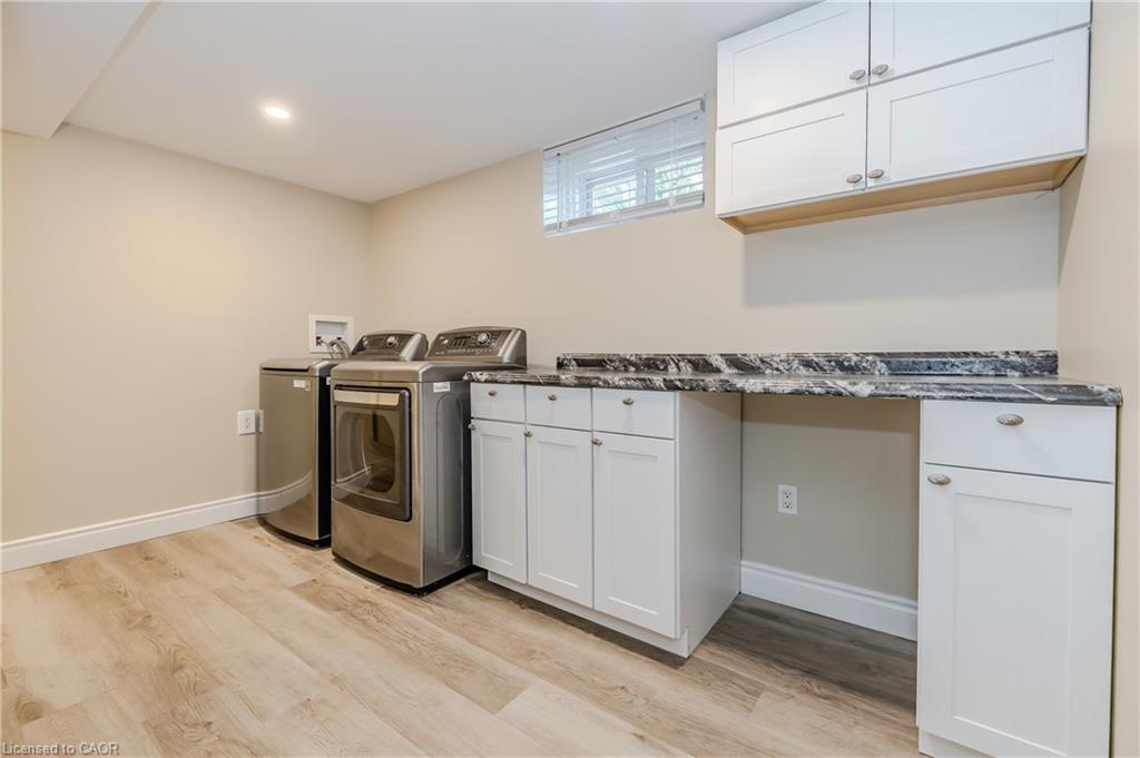 The generously sized kitchen offers ample counter space and functionality, making everyday cooking and hosting effortless. Enjoy the added convenience of on-site laundry.