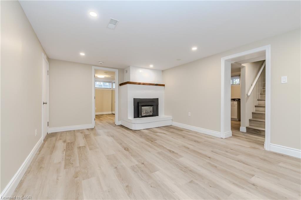 Welcome home to this beautifully renovated 1-bedroom lower-level bungalow, complete with two dedicated parking spaces. The bright and spacious living room is ideal for both relaxing and entertaining, featuring a cozy fireplace that enhances the warm, inviting atmosphere.