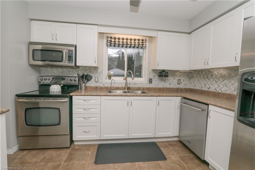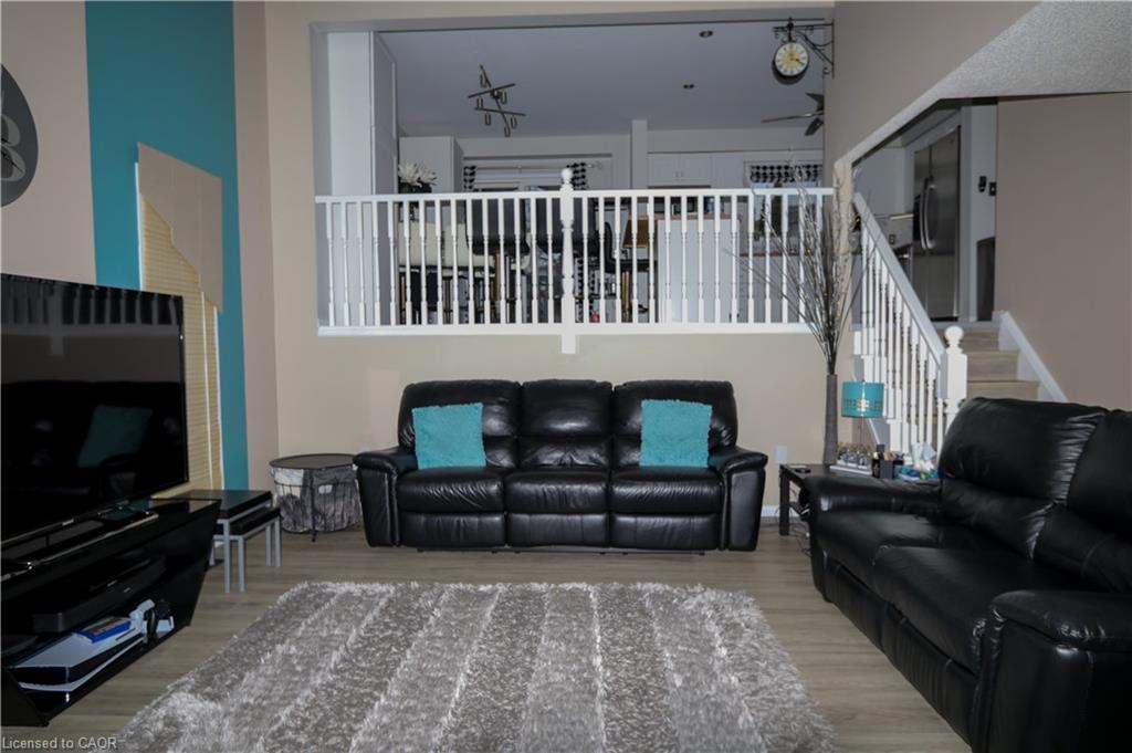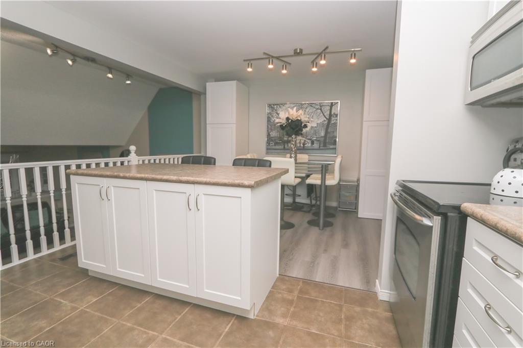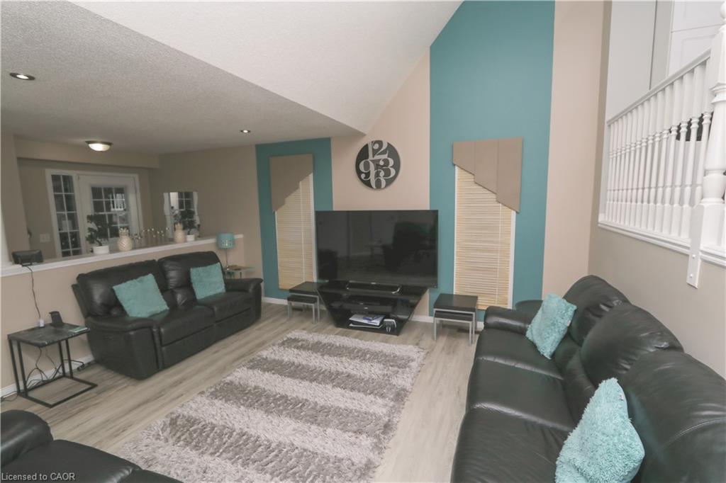 This beautifully designed multi-level home offers 3 spacious bedrooms and 3 bathrooms, blending comfort and functionality throughout. The inviting living room features a stunning cathedral ceiling, creating an open and airy atmosphere that flows seamlessly into the kitchen which overlooks the living space-perfect for everyday living and entertaining. The dining area includes a walkout to the backyard, extending your living space outdoors. A finished rec room provides additional space for family gatherings, a home office or entertainment. The finished basement is perfect for a games room, exercise room, play room, lots of potential! Convenient main floor laundry right off inside entry from garage. Outside, enjoy a good sized front porch ideal for relaxing, along with a beautifully landscaped backyard oasis with an above ground pool, stamped concrete patio and low maintenance composite deck-perfect for summer enjoyment. Furnace and Air conditioner were replaced 2025. The home features a 1.5 car garage and a stamped concrete driveway with parking for 4 vehicles offering ample parking in the driveway. This property is located in a desirable area in Hespeler, close to schools, Community Centre/skating rinks, and easy access to 401