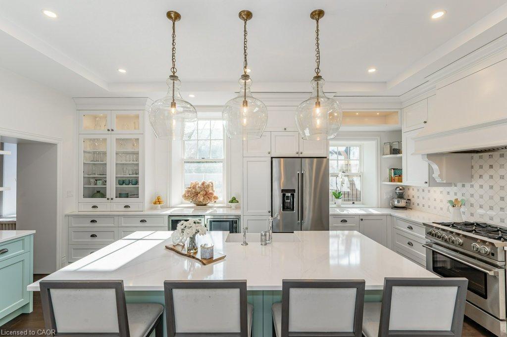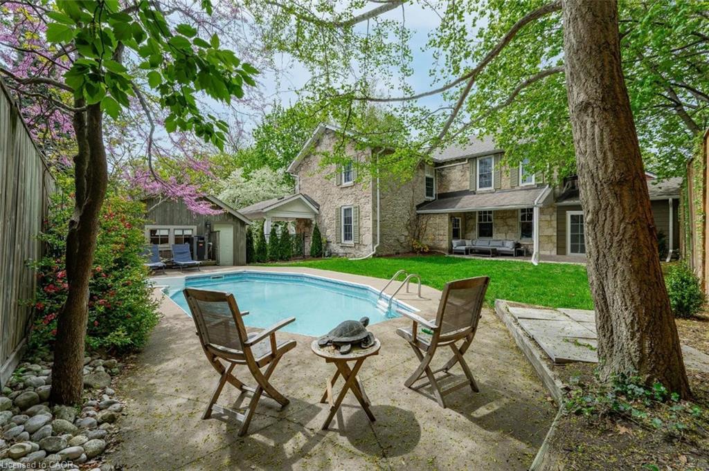 15 Liverpool is a timeless 3226sqft home that blends rich history W/thoughtful renovations nestled on one of Guelph’s most beloved streets just steps from vibrant downtown! Beyond its striking curb appeal & original limestone exterior this property offers a backyard oasis W/heated inground pool, perfect place to unwind & entertain! Built in 1850 & expanded over the decades, this 5-bdrm home retains key elements of its historic charm. 2 original Italian marble fireplaces imported in 1850s remain beautifully preserved-testament to the homes craftsmanship & legacy. Yet at every turn it’s clear this home has been updated for modern living. Custom kitchen is designed W/entertaining & everyday life in mind W/quartz counters, Paragon cabinetry, high-end appliances & radiant in-floor heating. Off the kitchen is bright mudroom, 2pc bath & laundry also W/heated floors. Formal living & dining rooms are elegant & inviting W/hardwood, soaring ceilings, high baseboards & oversized windows. Upstairs, 5 spacious bdrms provide room to grow, host or work from home. Large windows brighten every room while thoughtfully added closets offer rare storage for a home of this era. One bdrm has custom B/I shelving perfect for book lovers or collectors. 2 full baths offer timeless design W/beautifully tiled main bath W/glass shower & soaker tub. Fenced backyard oasis W/heated in-ground pool recently upgraded W/new pump, sand filter, heater & custom safety cover, turn-key for summer enjoyment! Detached 2-car garage at end of long driveway includes storage & EV-ready. Major updates have been completed: new hydro line, updated insulation, full drainage system, multi-zone heating/cooling & high-efficiency boiler. 2-min walk from downtown Guelph W/restaurants, shops, entertainment & GO Station. This home has been deeply cared for, one that honours its roots while embracing rhythm of modern family life. You’re not just buying a house you’re joining a story that’s been unfolding for more than 170yrs