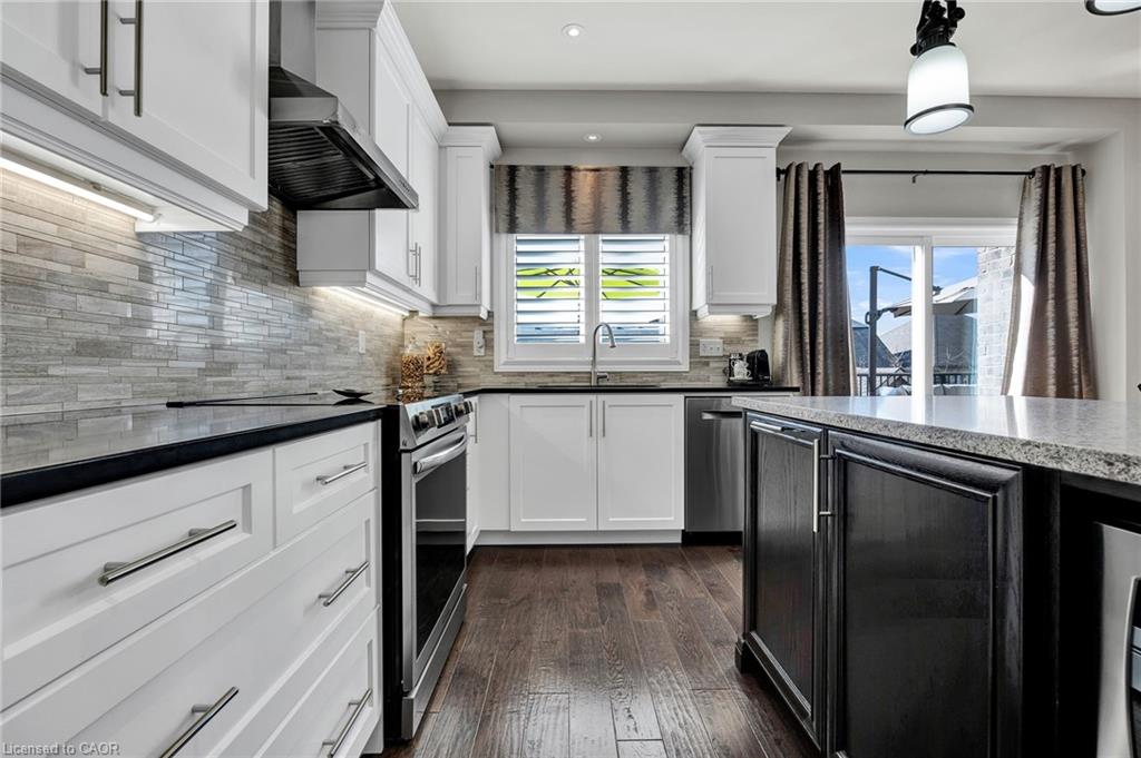Set in one of Kitchener’s most sought-after family communities, this exceptional original-owner home in Doon South offers over 4,500 sq. ft. of beautifully finished living space designed for the way families live today. Thoughtfully upgraded throughout, the open concept main floor blends style and function with 9-foot ceilings, engineered hardwood, a striking chef’s kitchen with quartz counters, oversized island, wall-to-wall pantry and seamless flow into sun-filled living and dining spaces anchored by a gas fireplace. Step out to the expansive covered deck spanning the width of the home, creating an incredible outdoor extension for entertaining or quiet evenings overlooking the private fenced yard, pot lights in the covered patio, exposed aggregate surrounds and custom insulated shed with electricity and loft. Upstairs, four spacious bedrooms and three full baths provide room to grow, including a luxurious primary retreat and convenient second floor laundry. The third-floor loft adds rare flexibility with its own living area, bedroom, bath and covered balcony, ideal for multi-generational living, teen retreat, guest suite or private work-from-home setup. The finished walkout lower level continues to impress with a large rec room, gym space, full bath and strong in-law potential with rough-in for a future kitchen. Every detail reflects pride of ownership, from California shutters and designer finishes to the oversized, insulated and painted double garage and thoughtful upgrades throughout. Beyond the home, Doon South is a neighbourhood families move into and stay for, loved for its executive homes, top-rated schools, trails, parks and strong sense of community, all just minutes to Highway 401, shopping and Conestoga College. Offering rare space, versatility and lifestyle in an established neighbourhood, this is the kind of home that adapts beautifully through every stage of life.