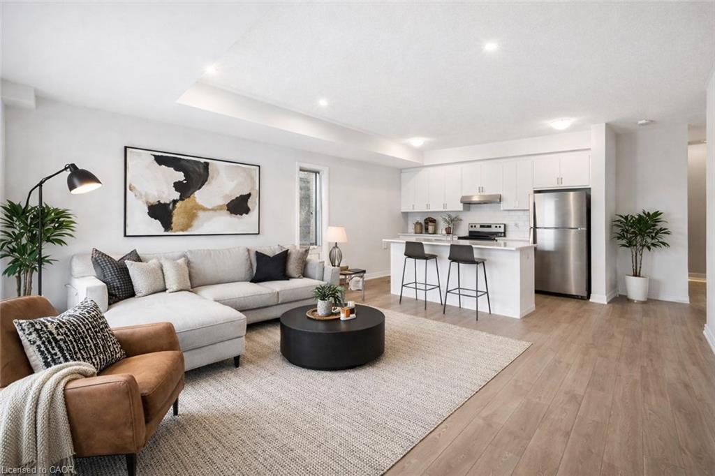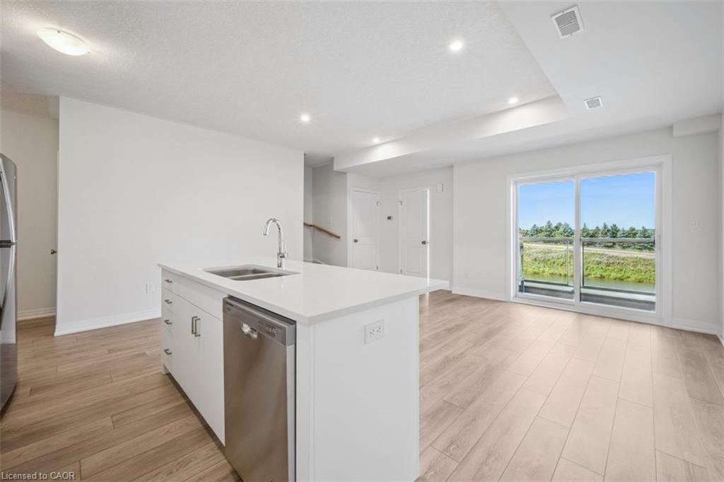 FIRST MONTH RENT IS FREE WHEN YOU SIGN A 13-MONTH LEASE! TWO PARKING SPOTS AVAILABLE. New tenants receive exclusive discounts on Rogers TV, internet and mobile services. BRAND NEW ENERGY STAR® CERTIFIED two and three bedroom stacked townhomes near Sunrise Shopping Centre with flexible move-in. Reserve your favourite unit today and move in anytime from now through July. Welcome to THE OKANAGAN, a 2 bed, 2.5 bath suite with high ceilings, premium finishes, and a bright open concept layout. The brand new kitchen boast quartz countertops, subway tile backsplash, full-size stainless steel appliances, and an oversized island with breakfast bar seating. Enjoy the convenience of in-suite laundry and central air conditioning/heat for year round comfort. Enjoy two private balconies—one off the living room and one off the master bedroom, offering beautiful views of the pond and countryside. Just steps away, Trussler Woods features peaceful trails—perfect for walking, jogging, and enjoying the outdoors. EV chargers and visitor parking available. Pet-friendly community. Located in a designated school bus zone, offering added convenience for families. Enjoy quick access to Highways 7/8 and 401. Actual units may vary in layout; interior finishes are consistent. Some photos may be virtually staged. Tenants pay utilities. Landlord is responsible for furnace filter replacements and water softener maintenance. Book a tour to explore all available suites!