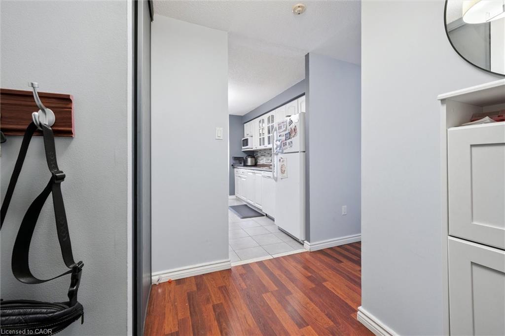 The building features a gym, sauna, and party room, and is conveniently located just minutes from Highway 401.