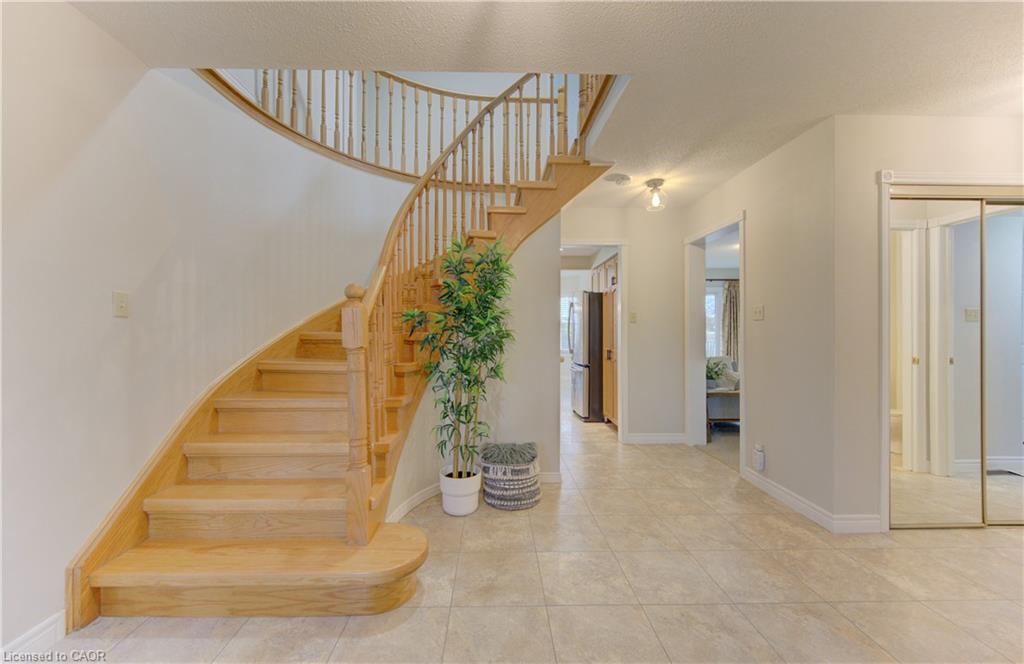 Welcome to this all-brick 4-bedroom home in the highly sought-after Shades Mill neighbourhood-offering over 2,300 sq ft of well-designed living space and a layout perfect for growing families. Step into an inviting foyer highlighted by a stunning spiral staircase that sets the tone for the home. The spacious main level features a formal living room and dining room, ideal for entertaining, along with a functional eat-in kitchen and a comfortable family room for everyday living. A convenient 2-piece bathroom and main floor laundry complete this level. Upstairs, you'll find a large primary bedroom with vanity area and its own private ensuite, along with three additional well-sized bedrooms-perfect for family, guests, or a home office setup. Additional features include a newer furnace and A/C for added peace of mind. Located in a family-friendly community, this home is close to top-rated Catholic and public schools, including French immersion options. Enjoy easy access to shopping, restaurants, parks, transit, and the nearby conservation area and beach. Commuters will appreciate being just minutes from Highway 401. A fantastic opportunity to own in one of the area's most desired family-friendly neighbourhoods.