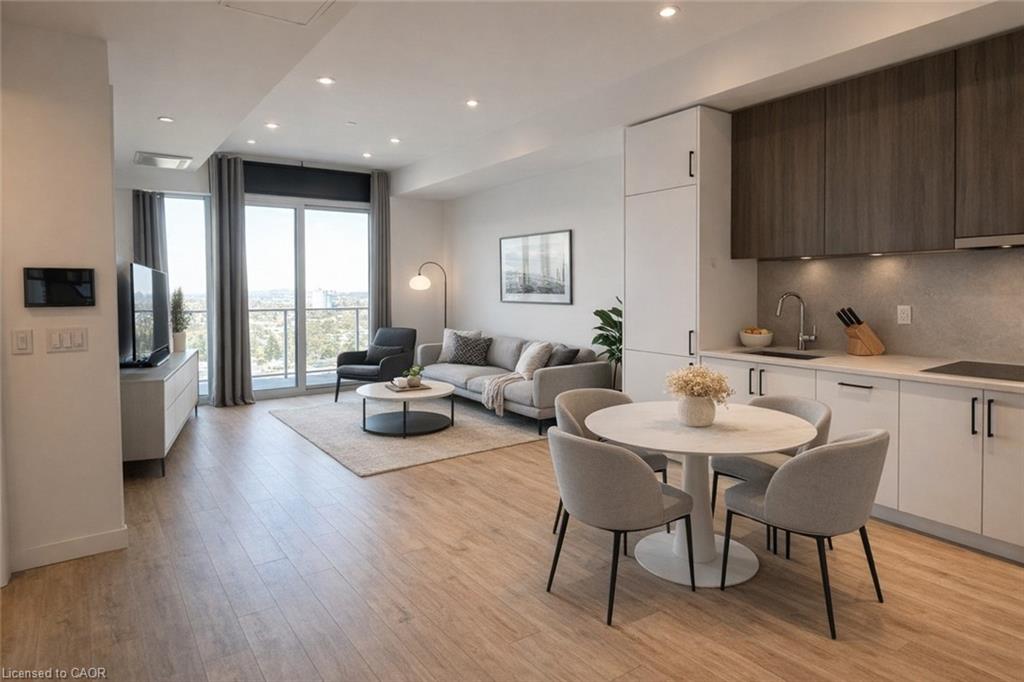 ONE BEDROOM CONDO FOR LEASE WITH RARE OVERSIZED BALCONY + UNDERGROUND PARKING. Welcome to 1602 - 741 King St W, a stylish, move-in-ready one-bedroom suite offering 581 sq ft of efficiently designed interior space plus a rare 192 sq ft private balcony. This unit provides a unique blend of comfortable indoor living and generous outdoor space in a central urban setting. The bright open concept layout features large windows flooding the space with tons of natural light, modern finishes, a functional kitchen, and an oversized ensuite laundry room, with underground parking included for added convenience. The monthly rent includes underground parking, heat and high-speed internet. Located steps from the ION LRT, Google, Grand River Hospital, cafés, restaurants, shopping, and Victoria Park, this home offers exceptional walkability and connectivity. Ideal for busy professionals seeking a connected, low-maintenance lifestyle in a prime central location within one of Kitchener's most vibrant neighbourhoods. Immediate occupancy available.