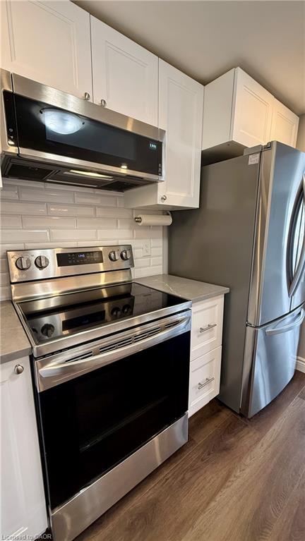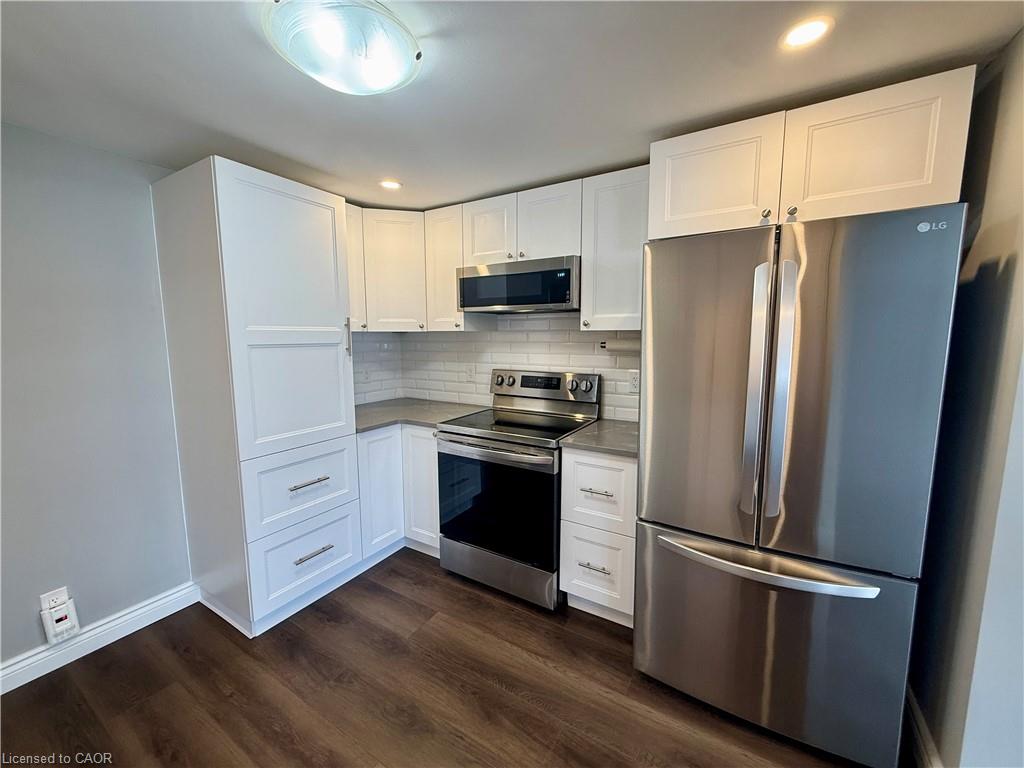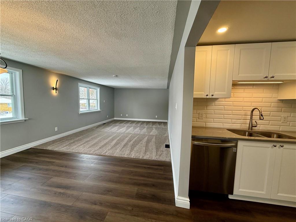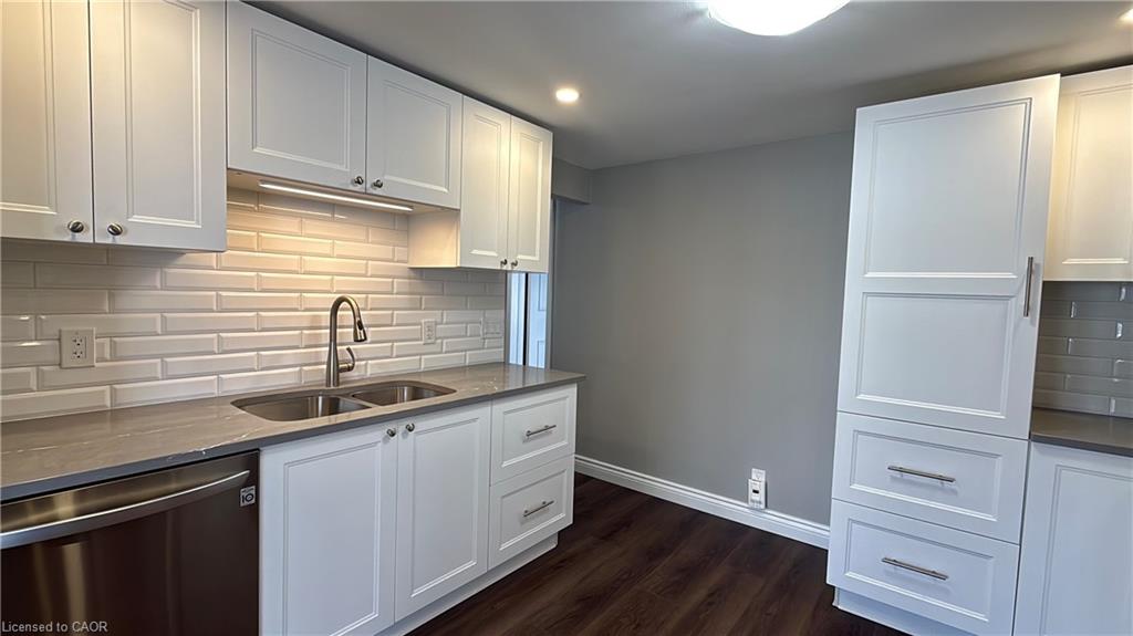 Spacious upper-level unit offering two generously sized bedrooms and a full 4-piece bathroom. This well designed layout flows into a beautiful walk-through kitchen featuring quartz countertops, double stainless steel sinks, a ceramic backsplash, and brand-new stainless appliances. At the rear of the home, the expansive living and dining area is filled with natural light, creating a bright and inviting atmosphere. The unit also includes the convenience of in-suite laundry. Enjoy a private entrance and one parking space, all ideally located within walking distance to shopping, the mall, public transit, and nearby parks, with easy access to Highway 401. Great onsite landlords! Settle in to this family friendly neighborhood and enjoy the quite family friendly neighborhood as you call this beautiful space home for your next chapter.