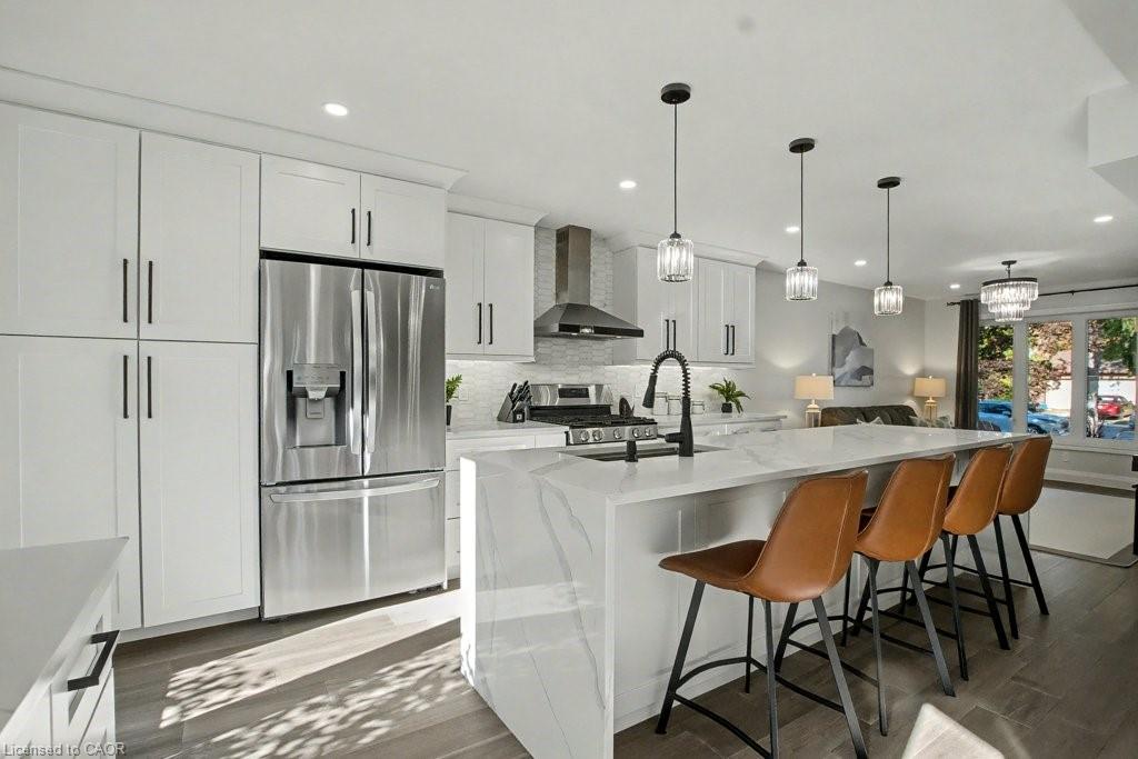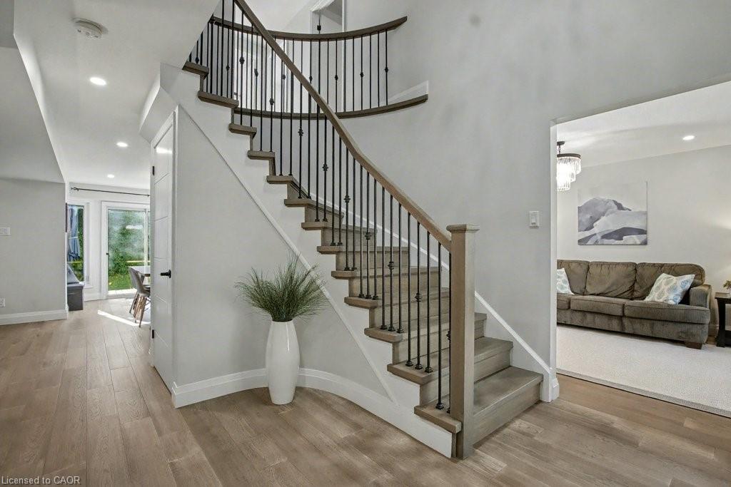 Welcome to this stunning 4+1 bedroom, 4 bathroom home, completely reimagined with high-quality construction and modern design. Offering an impressive approx 3400 square feet of finished living space, this home seamlessly blends comfort, style, and functionality. The main floor features a chef’s dream kitchen with a large island and striking quartz waterfall countertop, complemented by newer appliances and an open-concept layout that's perfect for both everyday living and entertaining. A soaring foyer welcomes you into spacious living and dining areas, with a cozy gas fireplace that adds warmth and charm to the space. Upstairs, you'll find generously sized bedrooms along with an additional family living room—an ideal spot for a kids’ play area, media lounge, or quiet retreat that offers even more versatility for a growing household. The fully finished basement includes a large recreation room and a private in-law suite with its own wet bar and bedroom, making it perfect for multi-generational living, or guests. Recent upgrades include a new water softener installed in 2022, updated eavestroughs in 2024, and new basement windows/window wells added the same year. New kitchen appliances (2022), new washing machine (2025). Located in a fantastic neighborhood close to scenic trails, shopping, and a wide range of amenities, this beautifully updated home is truly move-in ready and designed to suit the needs of modern living.