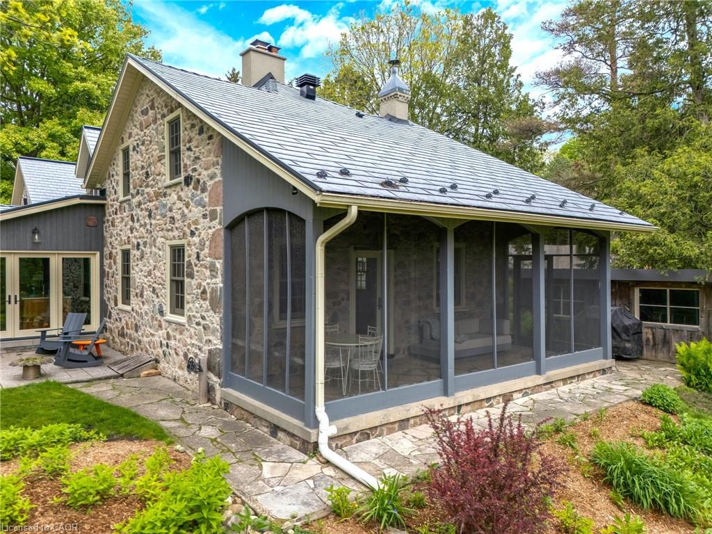 A RARE PIECE OF HISTORY MEETS MODERN COMFORT — WITH UNMATCHED AMENITIES. Welcome to one of the region’s original stone homes—an enchanting fusion of old-world charm and modern convenience, set on just under an acre of lush, private grounds. Nestled within The Kirksway, an 18-acre community of shared land, this remarkable property offers not only over 3,700sqft of living space but also access to exclusive amenities: scenic walking trails, a tennis court, a serene swimming pond, and a private beach—a lifestyle immersed in nature. This 4-bedroom, 3-bathroom residence tells a story of timeless craftsmanship and thoughtful updates. Mature trees line the property, offering a natural canopy and sense of tranquility from the moment you arrive. Inside, history lives in the details—exposed stone walls, warm wood finishes, and a stunning teak-walled family room that radiates character. Natural light flows through expansive windows, highlighting each room’s unique personality. The sunroom, with panoramic views of the grounds, invites you to sip your morning coffee or entertain guests in style. Just steps away stands the original smokehouse—a charming nod to the past, now transformed into a workshop, art studio, or the ultimate retreat. Set on .96 acres, there’s room to dream: build a garage, design a pool, or simply enjoy the peaceful seclusion. Major renovations between 2016–2025 include a custom stone addition, new vaulted roofline, metal shingles (2022), insulation, electrical, plumbing, and heating overhauls. Noteworthy features: ductless cooling (2020), new boiler (2021), windows/doors (2017 & 2025), 200AMP panel, on-demand water heater, UV filter and charcoal filter, water softener, and iron filter. This is more than a home—it’s a legacy, a lifestyle, and a rare opportunity to own a piece of history in a truly one-of-a-kind setting. Garage drawing to show potential for future - attached plans.
