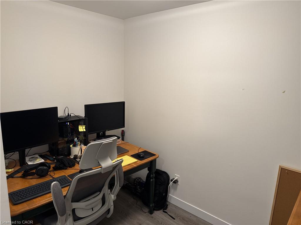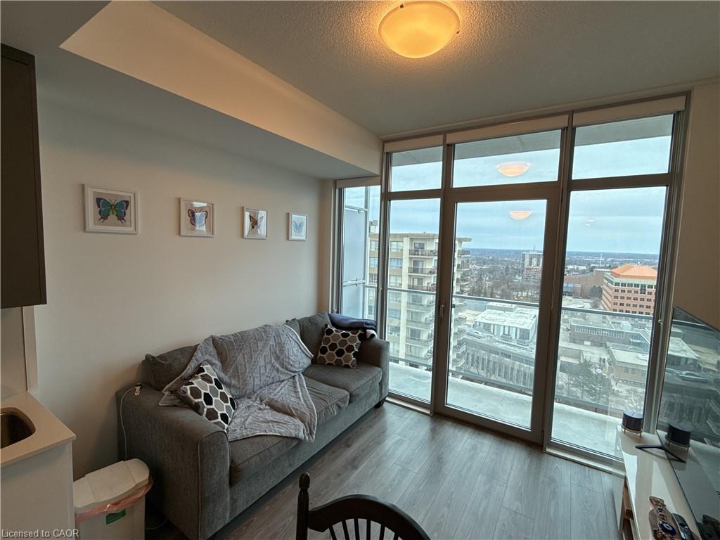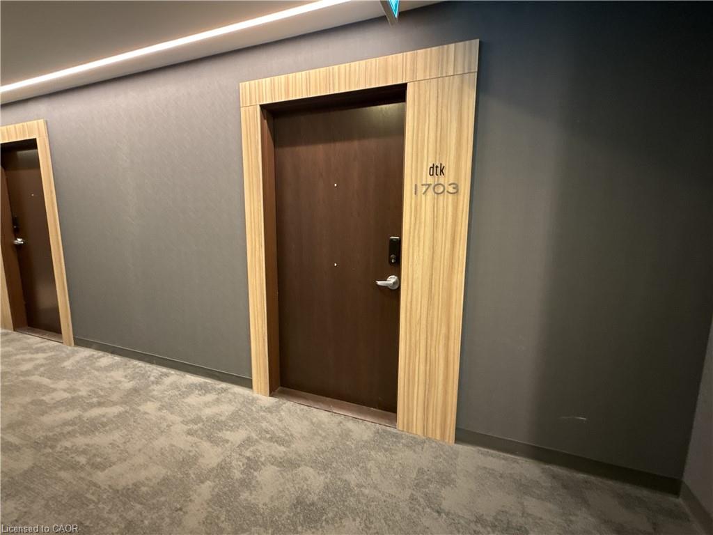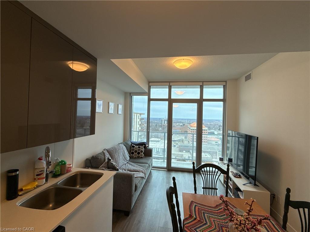 Welcome to 60 Frederick Street, Unit 1703. This spacious 1-bedroom plus den unit sits on the 17th floor of DTK Condos, one of the tallest towers in the Kitchener. A rare find in this building: the unit comes with its own underground parking spot with a large storage locker located directly behind it, steps from the elevator. City and skyline views through floor-to-ceiling windows, with balcony access from both the living room and bedroom. The open concept layout features a kitchen with stainless steel appliances and stone countertops, an ensuite bath, and in-suite laundry. The den offers flexibility as a home office, guest space, or dining area. The unit includes a smart home package with smart door lock, thermostat, and lighting. Heat, water, air conditioning, and high-speed internet are all included in the rent. Building amenities include 24-hour concierge, fitness centre, yoga studio, party room, rooftop terrace with BBQs, and communal garden. Steps to the ION LRT, Conestoga College Downtown Campus, restaurants, and the heart of Kitchener's Innovation District. Available June 1st!