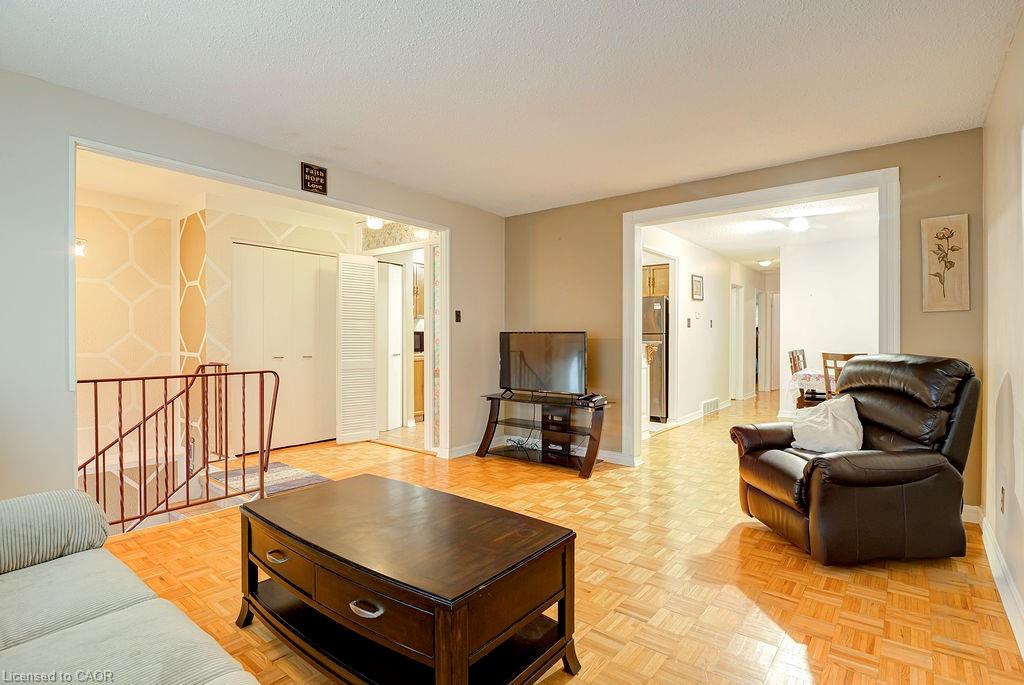 The upper floor has generous room sizes and large windows allowing plenty of natural light to flow into the home. With three good-sized bedrooms and a full bathroom there is enough space for the family. You will love the oversized backyard (145 ft long) with trees providing privacy to relax and enjoy while entertaining guests and family gatherings. Gleaming parquet flooring is throughout most of the house and is in excellent condition. This home is ideal for anyone wanting to get into a home with a desirable and functional layout, located in a neighbourhood that is highly accessible to shopping, public transit, schools, parks and also the expressway leading to the 401 for commuters! Flexible possession is possible.
