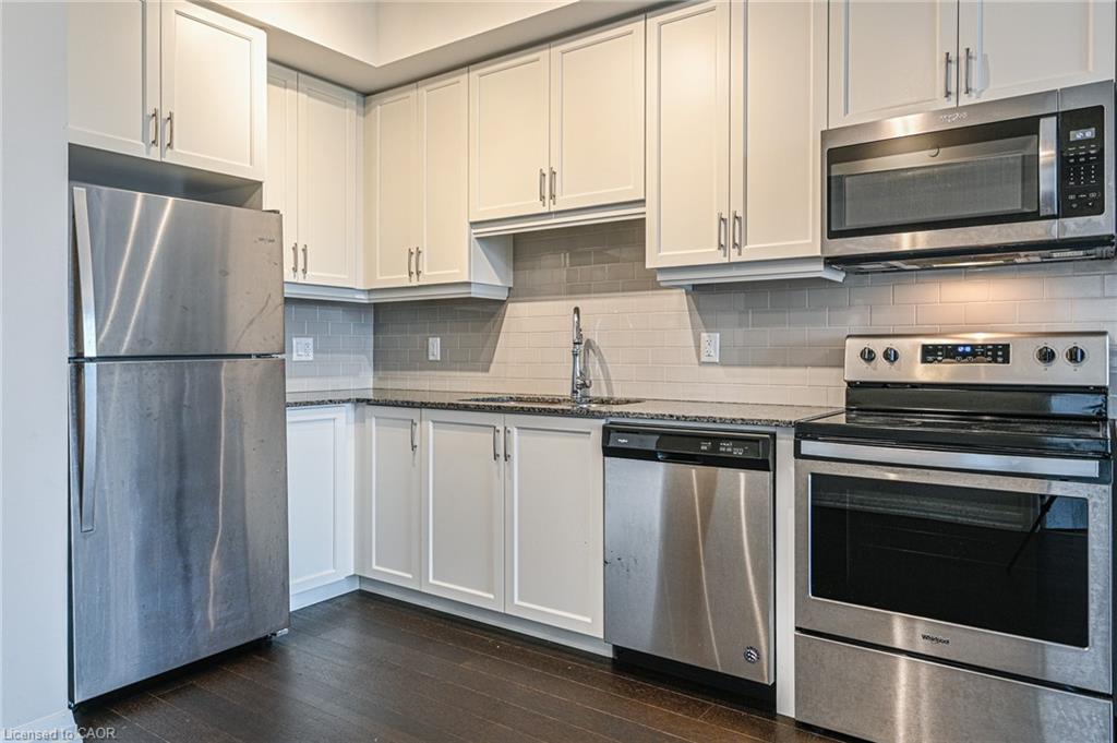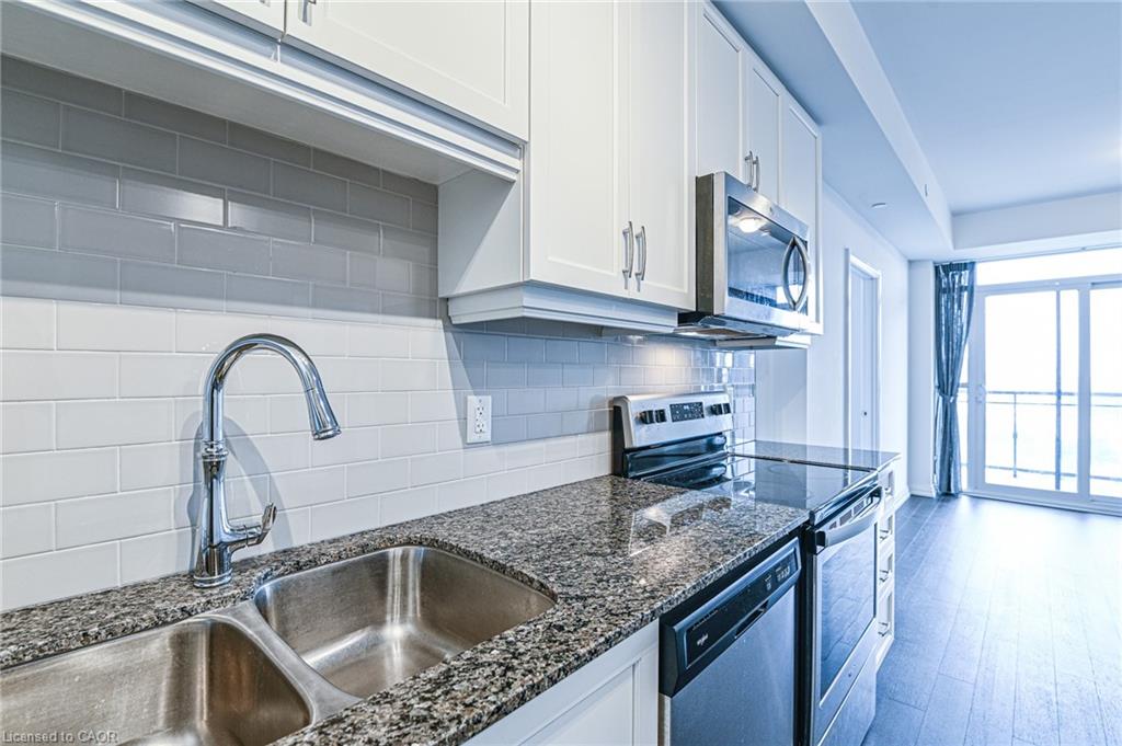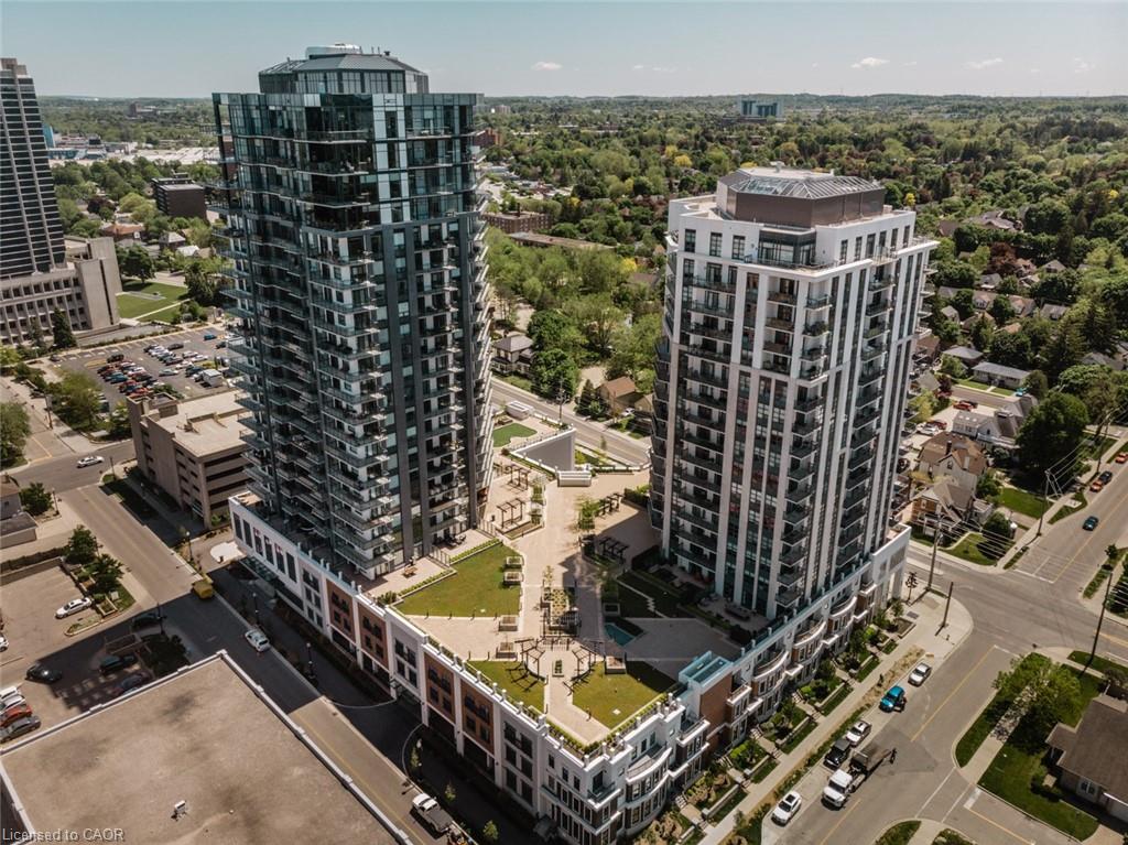 Located in prestigious Uptown Waterloo, here is an opportunity to move to the highly sought after Caroline Street Private Residences. Unit 1801 offers just under 1000 square feet of generous interior living space, 2 bedrooms, 2 bathrooms, Den, and a 135 square foot balcony with north western views of Waterloo. In pristine condition, the open concept living, dining, and kitchen area is impressive and will make entertaining an ease with the kitchen featuring granite countertops and stainless steel appliances complimented by white cabinets. The primary bedroom features a walk in closet and ensuite with 4 piece washroom. The den offers a perfect area for a home office and/or extra storage space The condo comes equipped with in suite laundry, 1 underground parking space and a locker. Amenities include a concierge, fitness centre, guest suite, massive outdoor terrace with barbeques and a putting green, and media room. Enjoy being steps from grocery stores including Vincenzo’s, upscale restaurants, public transportation, Waterloo Park, and Waterloo square. Call today for your private showing. This suite is vacant and ready for immediate occupancy.
