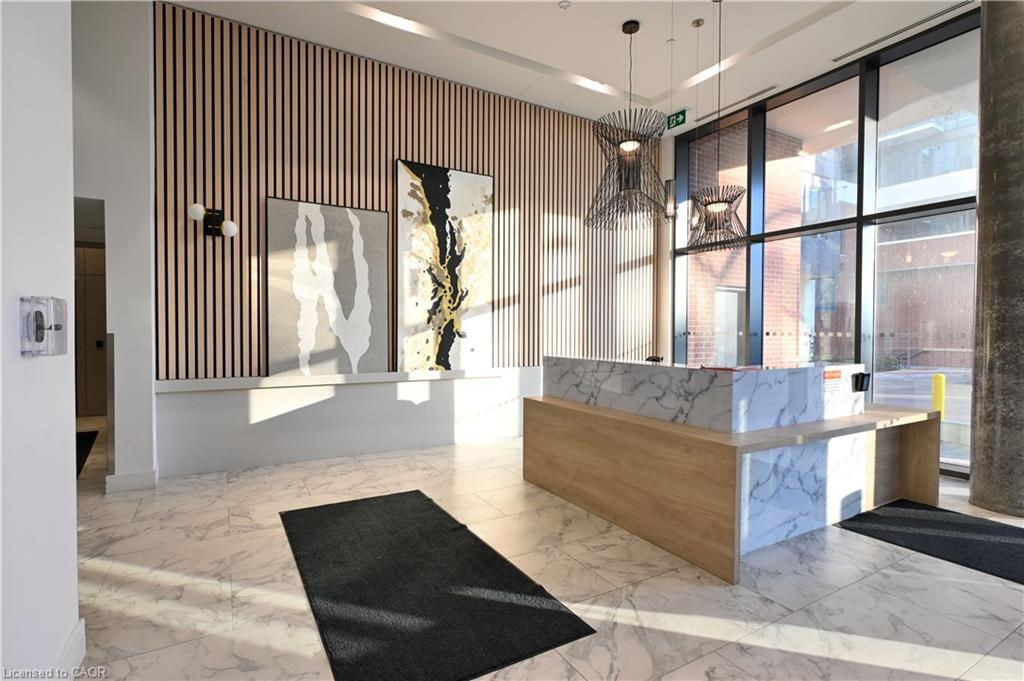 Experience urban living at its finest in this stunning condo located in the heart of Downtown Kitchener at Station Park - just steps from transit and directly across from the Google office. This well-maintained and secure building offers an unmatched lifestyle with world-class amenities including a two-lane bowling alley with lounge, premier bar and games area with billiards and foosball, private hydropool swim spa & hot tub, fully equipped fitness and yoga/pilates studios with Peloton bikes, pet spa, and a beautifully landscaped outdoor terrace with cabana seating and BBQs. Enjoy the convenience of a concierge desk and private dining room with a full kitchen for hosting. The suite itself features an upgraded kitchen and is perched on a high floor offering breathtaking city views. A perfect blend of luxury, comfort, and unbeatable location!