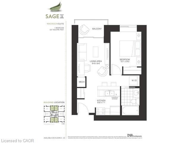 Features include: High-end finishes such as granite countertops and stainless steel appliances. In-suite laundry for added convenience. Builder's plan includes 527 sq. ft. of living space plus a 43 sq. ft. balcony. Includes one underground parking spot.