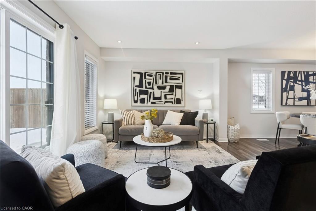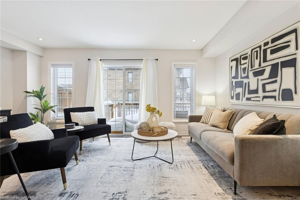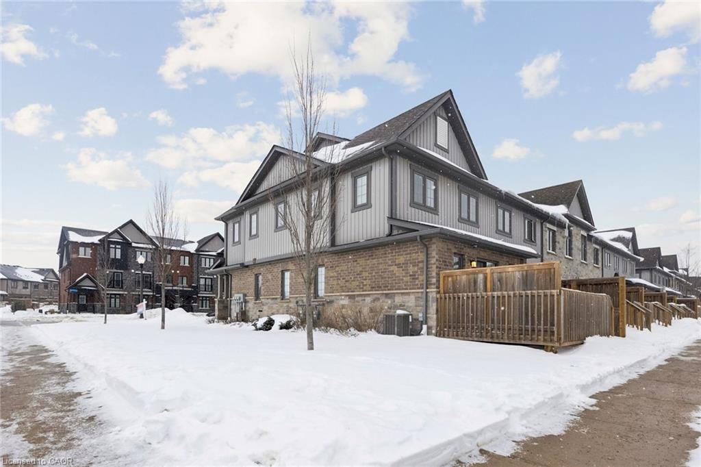 Absolutely Gorgeous End Unit Townhome Available in Kitchener's Sought-After Family Neighbourhoods, Doon South, Turn-Key & Move-in Ready! Open Concept Living and Dining Areas Filled With Natural Sunlight. Upgraded Kitchen Featuring Stainless Steel Appliances, Granite Countertop, and Backsplash. Brand New Laminate Flooring Throughout the Main Floor and Freshly Painted in 2025. The Second Level Offers 3 Spacious Bedrooms and 2 Full Bathrooms. Primary Bedroom With Full Ensuite And Walk-In Closet. Insulated Basement with Bathroom Rough-In, Offering Excellent Potential for Future Finishing. Enjoy the Backyard Space, Perfect for Relaxing or Entertaining Year-Round. Situated in One of Kitchener's Most Sought-After Family Neighbourhoods, Directly Across From Groh Public School and Close to Multiple Elementary and Secondary Schools. Quick Access to Highway 401 Makes Commuting Throughout the Region a Breeze. Enjoy Nearby Parks, Trails, Transit Access, and Convenient Shopping, Just Minutes Away.