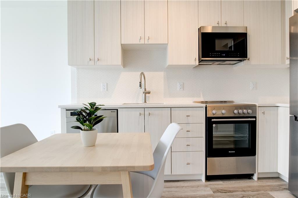 Discover an unparalleled living experience in this one-bedroom plus den, one-bath unit at the sub-penthouse floor of the prestigious Station Park Towers. This 625 sq. ft. gem, available for lease, offers breathtaking panoramic city views, encapsulating the essence of luxury and sophistication. Step into a carpet-free, elegantly designed space adorned with premium window coverings and partially furnished with essential pieces including a bedframe, side table, and dining set. The unit's open-concept layout is highlighted by a spacious dining area and a charming 50 sqft balcony, bringing the total living space to an expansive 675 sq ft. Modern Comfort and Convenience: Equipped with stainless steel appliances and a stackable washer/dryer, this home ensures the pinnacle of modern comfort. Underground parking adds to the convenience, making this unit perfect for contemporary urban living. Station Park holds World-Class Amenities; Indulge in a lifestyle of leisure and entertainment with an array of exclusive amenities: Two-lane Bowling Alley with a lounge, Premier Lounge Area with a bar, pool table, and foosball. Fitness Center complete with gym equipment, a yoga/pilates studio, and a Peloton studio. Landscaped Outdoor Terrace featuring cabana seating and BBQ facilities. Prime Location Located in the heart of the city where Downtown Kitchener meets Uptown Waterloo, Station Park offers unmatched convenience: New Transit Hub proposed nearby and the LRT station right at your doorstep on King Street Google Office just across the street Easy access to highways and bus routes. Book your private showing today!
