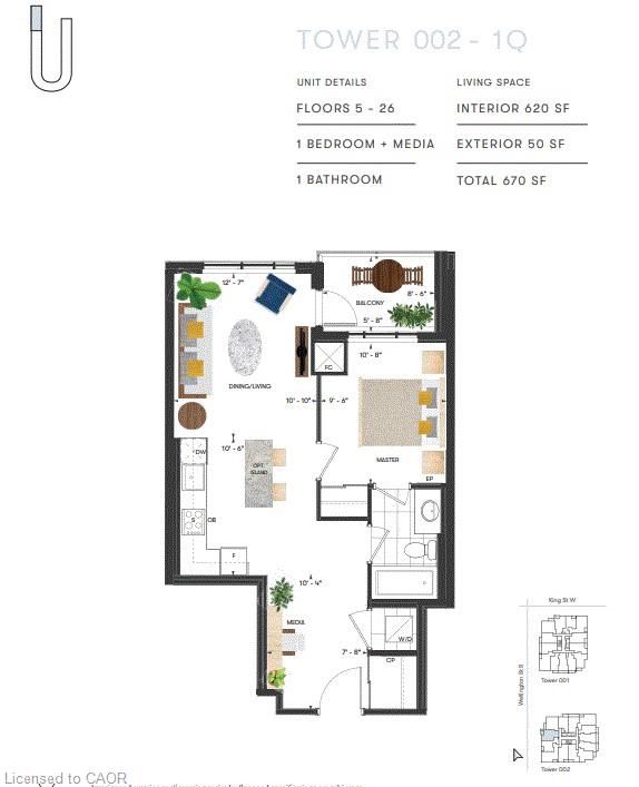 Beautiful one bedroom + DEN unit with underground parking and window coverings. Bell Internet, Heat and A/C are included in the lease as well! This unit is in the second tower of the long anticipated Station Park. Centrally located in the Innovation District, Station Park is home to some of the most unique amenities known to a local development. Union Towers at Station Park offers residents a variety of luxury amenity spaces for all to enjoy. Amenities include: Two-lane Bowling Alley with lounge, Premier Lounge Area with Bar, Pool Table and Foosball, Private Hydropool Swim Spa & Hot Tub, Fitness Area with Gym Equipment, Yoga/Pilates Studio & Peloton Studio , Dog Washing Station / Pet Spa, Landscaped Outdoor Terrace with Cabana Seating and BBQ’s, Concierge Desk for Resident Support, Private bookable Dining Room with Kitchen Appliances, Dining Table and Lounge Chairs, Snaile Mail: A Smart Parcel Locker System for secure parcel and food delivery service. And many other indoor/outdoor amenities planned for the future such as an outdoor skating rink and ground floor restaurants! Shopping and dining will be right on your doorstep, as Station Park will be outfitted with a number of retail and culinary options, including a grocery store! Do not miss out on this opportunity to rent in one of the best developments in Kitchener-Waterloo before rental rates increase further! Be where the action is!