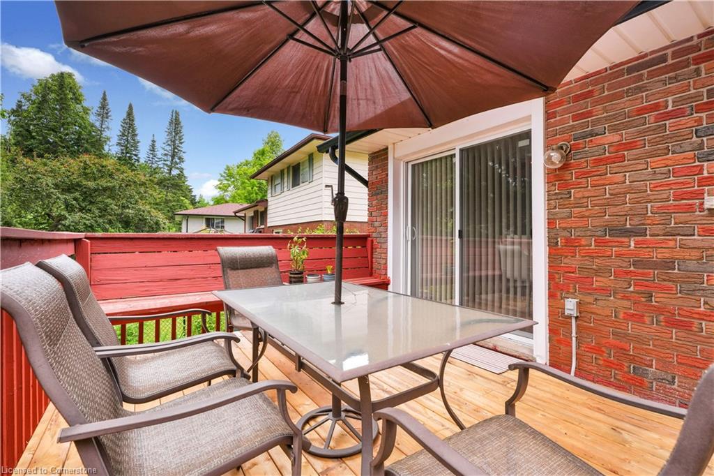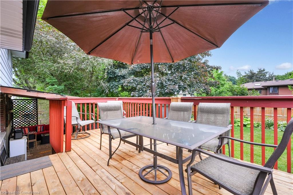 A gardener or bird watcher's paradise in desirable neighbourhood close to schools, shopping, banks, restaurants and expressway. Bus route & community center nearby; 5 minute drive to U of Waterloo and 10 min to Conestoga Mall. Sidesplit with main floor office is terrific for work from home or home based business. Living room is carpet free and features large picture window looking over this quiet street. Dining room is open to the kitchen for family gatherings. Sliding doors take you to the deck overlooking the lush, landscaped yard. On those rainy days, enjoy the covered porch, accessed from the deck or garage. Upstairs are 3 bedrooms and a family friendly 4-pc bath with a privacy door separating the sinks from the toilet & tub/shower. Looking for a space to