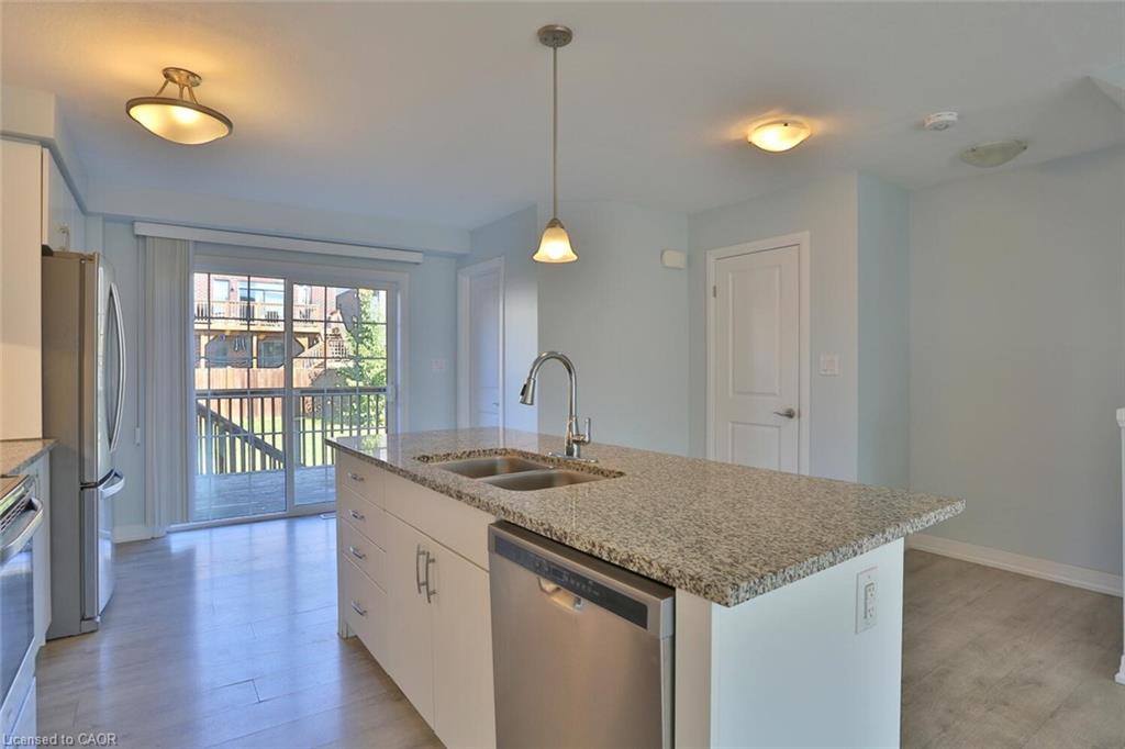 NEWER TOWNHOUSE FOR LEASE CLOSE TO 401. Beautifully finished top to bottom 3-bedroom, 3-bathroom home. Open Concept main floor with granite counter tops and stainless-steel appliances and huge island in the kitchen. Modern laminate flooring and ceramics throughout. Master Bedroom with ensuite bathroom, ceramic/glass shower and a walk-in closet. Washer & dryer. Central Air and garage door opener with remotes. NEW ELEMENTARY SCHOOL. Photos as per vacant unit and few virtually staged. Utilities paid by tenants include water heater and softener rentals. Good credit is required, and a full application must be submitted.