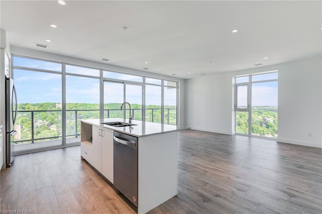 Here is your opportunity to live in one of the most prestige's buildings in Cambridge. What a stunning view of the Grand River and downtown walking bridge from the 19TH floor. The balcony spans the entire length of the unit including the Primary bedroom. This is the largest unit available in the building at 1165 sf. Be among the first to move in 2026 and enjoy what Gaslight has to offer. The Grand River and downtown Galt are both just a short walk away from this beautiful two bedrooms and two full bathrooms corner unit with wrap around windows and stunning views, at the GASLIGHT DISTRICT! The primary bedroom has its own en-suite bathroom and 2 large closets and plenty of space in the open style great room and kitchen area. This place comes with Stainless steel appliances , 1 parking space in the covered parking garage. Amenities consist of a party area with a bar and lounge, a fitness center with a yoga studio, roof top deck/garden, games room and so much more. Book your viewing today!