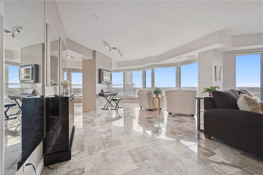 Welcome to a truly rare offering - perched on the top floor and wrapped in floor-to-ceiling windows, this 2-bedroom, 2-bathroom penthouse delivers unobstructed views that stretch for miles. Whether you're sipping morning coffee or hosting sunset dinners with friends, you'll be surrounded by skyline vistas that are simply unmatched in the city. Inside, the space lives large. A fully renovated kitchen and updated ensuite bring modern touches to a timeless layout, while each room flows effortlessly into the next. There's space here for everything - entertaining, unwinding, working from home, or just living life your way. Downsizers, take note: this suite offers all the square footage you've been missing - plus the bonus of two side-by-side indoor parking spaces and access to some fantastic amenities. From the indoor pool and dual saunas to the tennis court, woodworking shop, games room, party room with kitchen, guest suite, BBQ gazebos and expansive courtyard - it's all here, without the maintenance of a detached home. This is condo living at its most relaxed and refined - offering the scale of a bungalow, the security of a top-floor unit, and a daily connection to the sky above and the city below. You won't find another like it. Come experience what it means to live above it all.