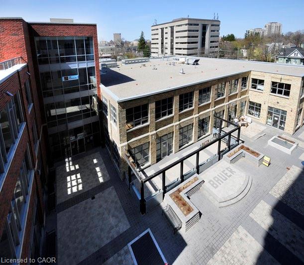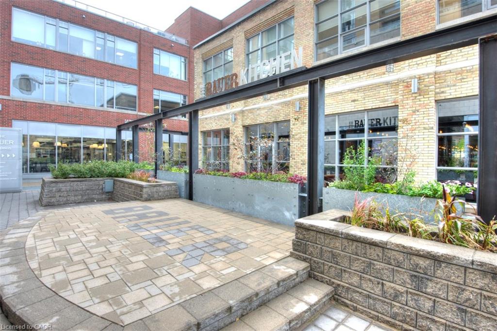 Spacious Condo unit at Bauer Loft. West Facing with floor to ceiling windows and balcony. Open concept with ample room in the living/dining area. 2 Bedrooms, 2 full bathrooms, granite counters, laminate in living area and carpet in Bedrooms. Steps to Bauer Market Place, Uptown Waterloo and Public Transit. Underground parking. Great Views! Amenities include fitness room, party room, and roof top terrace with barbecue.