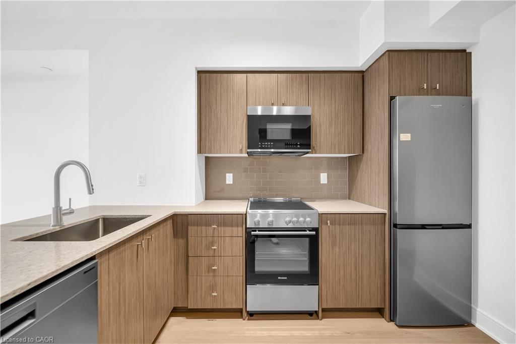 Never Lived-Brand New Residence Just Days Old, welcome to Unit 1914 at Station Park Duo-offering a rare opportunity to own a pristine, never-lived-in home in the heart of Midtown Kitchener. This impeccably crafted one-bedroom plus den suite delivers a seamless blend of sophistication, comfort, and investment potential within one of the region's most coveted communities.Bathed in natural light, the open-concept living space showcases refined finishes and seamless design. The contemporary kitchen is a statement in both style and function, featuring sleek stainless steel appliances, polished granite countertops, custom soft-close cabinetry, and elegant pot lighting-perfect for both everyday living and effortless entertaining.Unwind in the sun-filled living area or step onto your private balcony to take in breathtaking sunset views that elevate your everyday experience. A versatile denprovides the ideal space for a home office or guest retreat, while in-suite laundry and dedicated underground parking add an extra layer of convenience. Residents of Station Park enjoy an unparalleled suite of resort-inspired amenities designed to rival luxury hotels. From concierge service and an expansive sky deck to aswim spa, hot tubs, private bowling lanes, and a state-of-the-art fitness centre with Peloton studio-every detail is curated for an exceptional lifestyle. Social lounges, co-working spaces, BBQ terraces, EV charging, and pet-friendly features complete this dynamic offering. Positioned steps from the ION LRT, the Google campus, Downtown Kitchener, Uptown Waterloo, and the thriving Innovation District, this residence offers un-matched connectivity to the region's top employers, dining, and cultural destinations. With short-term rental permissions (Air bnb) and a limited licensing cap, this property also presents a compelling opportunity for the savvy investor seeking both lifestyleand income potential. Some Photo's are virtually staged.