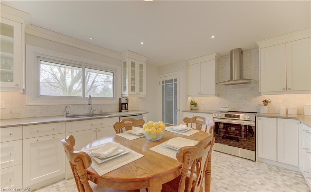 The main bathroom is beautifully appointed with a granite-topped vanity and a glass walk-in shower complete with bench seating and handrails. Bedrooms feature new carpet and generous closet space. The fully finished basement extends your living area with a spacious rec room anchored by a cozy gas fireplace, a 2-piece bathroom, a large laundry room, and abundant storage. Enjoy added seasonal living space in the attached 11’ x 19’ sunroom, or step outside onto the large patio with charming gazebo that's perfect for relaxing or entertaining. An impressive 24’ x 23’ double-car garage with dedicated workshop easily accommodates two vehicles, while still offering ample space for storage, hobbies, or projects. The double-wide driveway adds everyday convenience. Water softener is brand new. Located steps from top-rated schools and within walking distance to vibrant Uptown Waterloo, you’ll enjoy easy access to cafes, restaurants, shopping, the LRT, and Waterloo Park.