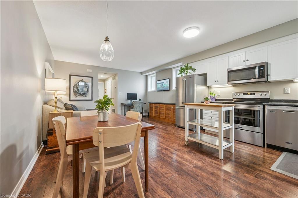 Welcome to this clean and tidy 1-bedroom, 1-bathroom stacked condominium—ideal for first-time buyers, downsizers, or investors seeking a move-in ready and low maintenance home. Conveniently located in Kitchener’s desirable west end, you’re steps from a wide range of everyday amenities, including shopping, dining, fitness centres, and entertainment at The Boardwalk, as well as nearby parks, trails, and green spaces. Commuters will appreciate quick access to Highway 7/8, connecting you to Waterloo, downtown Kitchener, and the 401, with public transit just steps away for added convenience. Inside, a thoughtfully designed open-concept layout maximizes space and functionality, featuring a bright living area, dinette, and well-appointed kitchen with stainless steel appliances. The spacious bedroom offers wall-to-wall closets and is complemented by a 4-piece bathroom with tub and shower. Additional highlights include in-suite laundry with stackable washer and dryer (2025), new furnace (2026), owned water softener, large under-the-stairs storage closet, and a private, fully fenced outdoor patio—perfect for relaxing or entertaining. One owned parking space included and visitor parking on site. Whether you're entering the market, looking to downsize, or adding to your investment portfolio, this is a fantastic opportunity to own a move-in ready and exceptionally well located home in a thriving community!