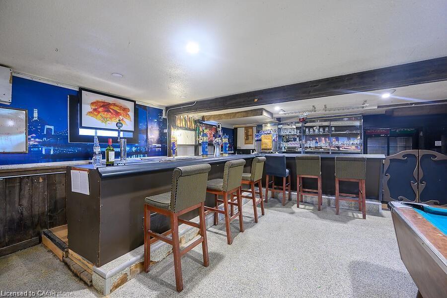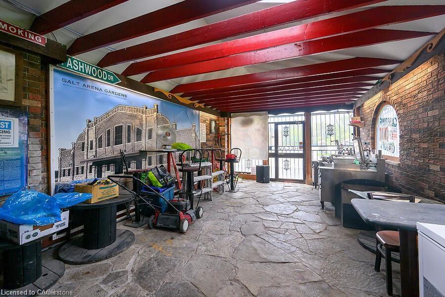 Wonderful location for any hospitality business directly across the street from the Historic Galt Arena Gardens, and parallel to Soper Park. This multi-level 2500 sq.ft property is currently operating as a restaurant and separate bar equipped with a indoor/ outdoor patio. Lease is for the bar and patio area only but may be leased in conjunction with the restaurant. Recent improvements include, concrete sidewalk gas furnace, A/C and plumbing. The bar area contains a stage area ideal for live music and entertainers. Property can be re-purposed for any number of uses suitable to any buyer. Current zoning C3. Fantastic investment opportunity in a thriving entertainment area.
