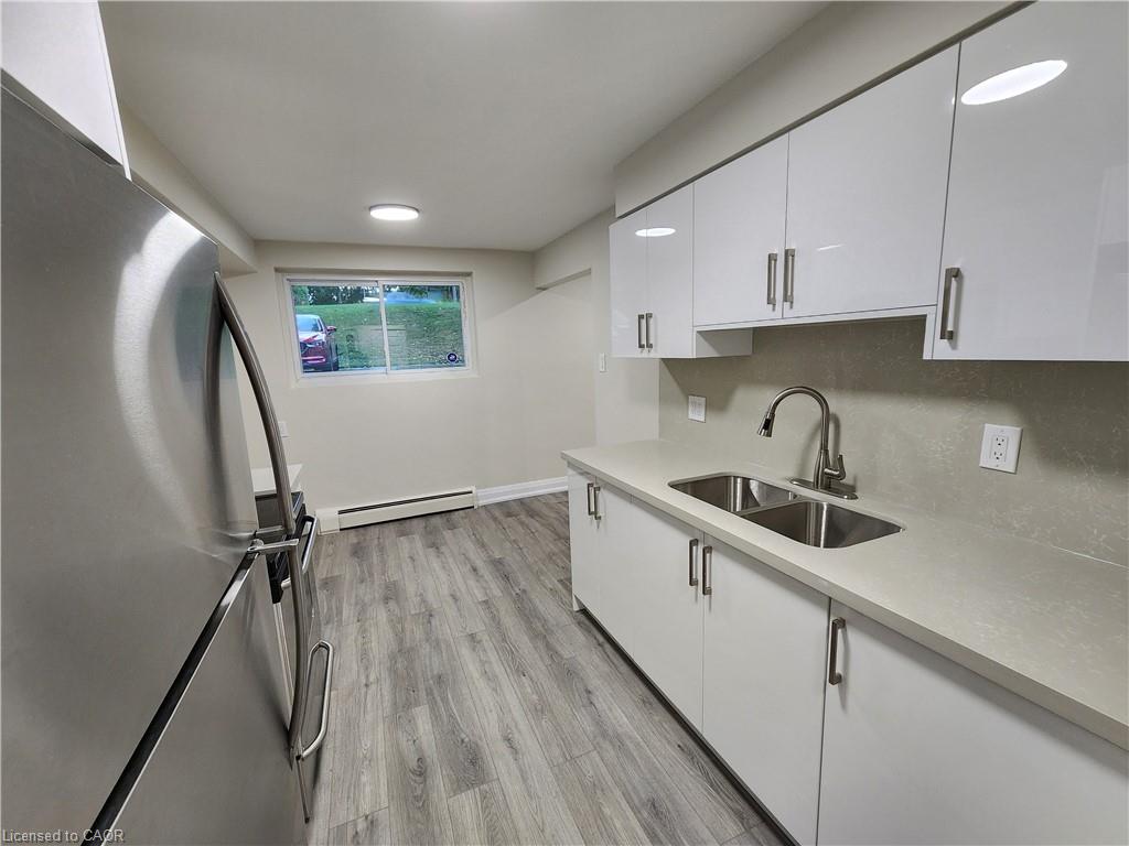For rent recently renovated, & very spacious 2 bedroom apartment for rent located in a well kept & quiet apartment building & located just minutes away from Downtown Guelph, ON. This unit is roomy and also includes 1 exterior parking space (with the possibility of a additional parking space available). Along with 2 nicely sized bedrooms & a comfortably sized living room, this apartment is located on the ground floor of the apartment building some additional features of this stunning 2 bedroom apartment include brand new stainless steel kitchen appliances, beautiful new kitchen cabinetry with tons of storage space, brand new countertop, brand new light fixtures throughout unit, fully renovated bathroom, multiple closet spaces throughout unit, generously sized living, brand new high quality laminate flooring throughout kitchen & bathrooms, freshly painted walls, 1 parking space, large windows throughout unit, on site laundry etc. This building is located in a convenient central location making the Downtown Guelph core just minutes from your front door! Bus stops, restaurants, plazas & storefronts, parks, grocery stores, schools, walking trails, & more are all just minutes away.